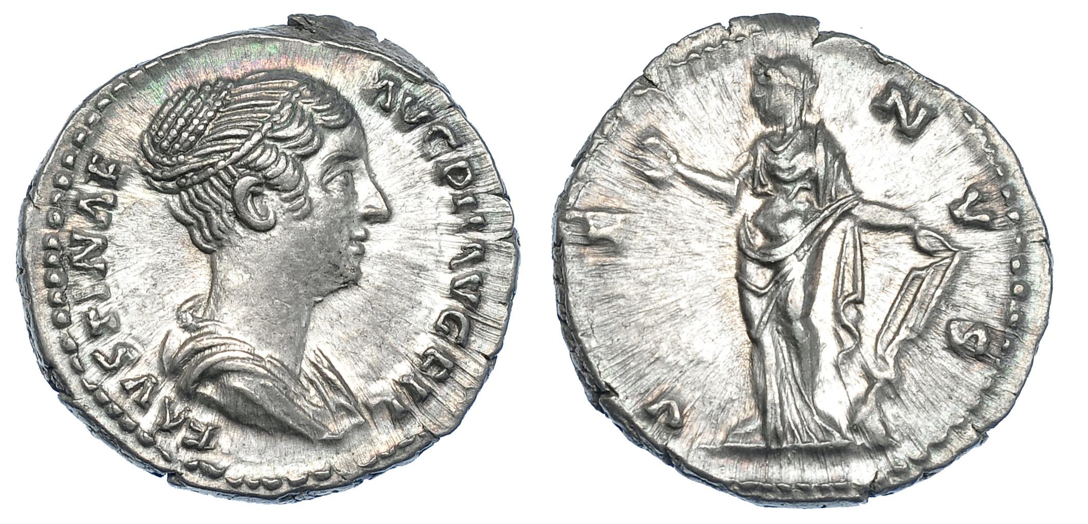 FAUSTINA LA MENOR. Denario. Roma. R/ Venus a izq. con manzana y timón; VENVS. RIC-513d. EBC+/EBC.