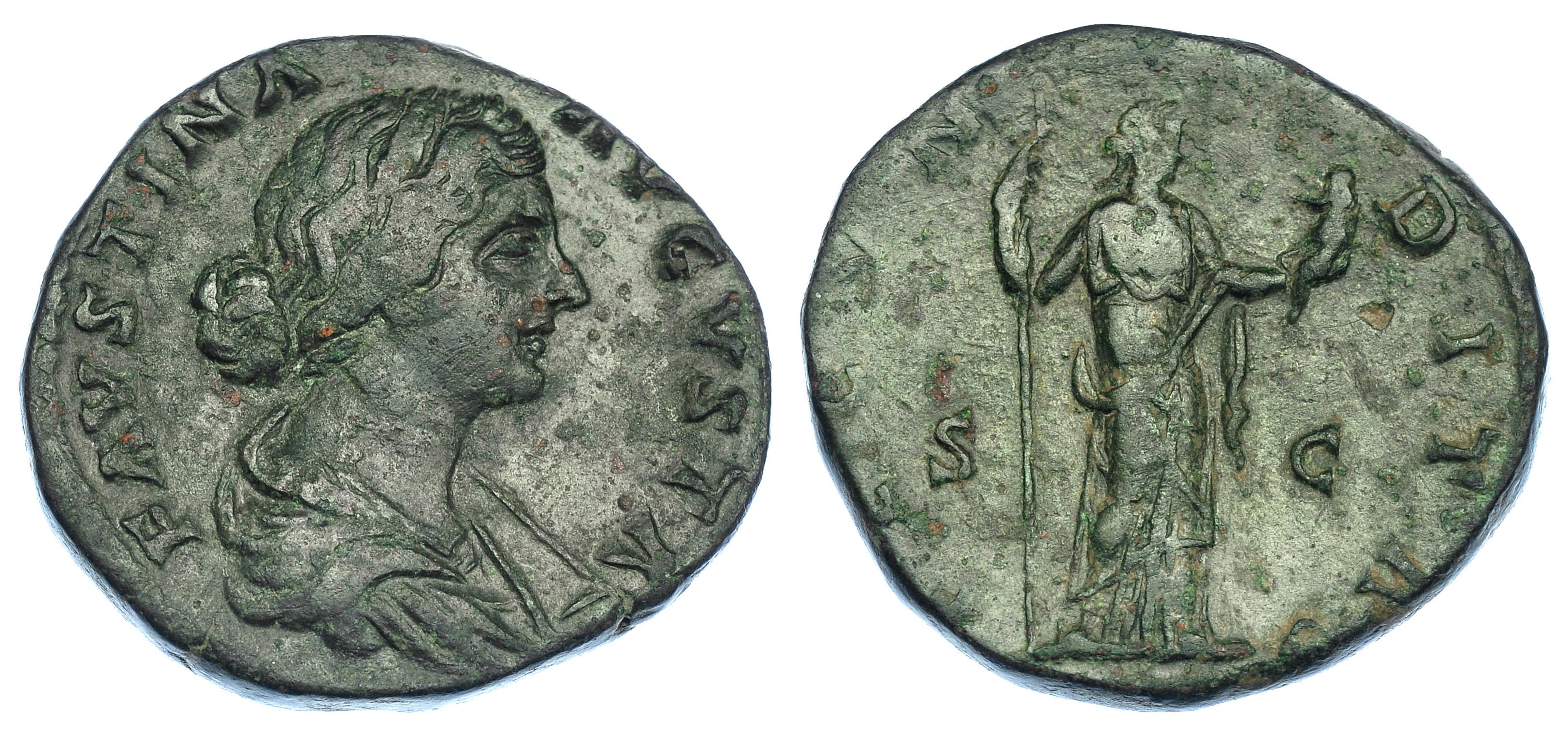 FAUSTINA LA MENOR. Sestercio. Roma. R/ Fecunditas a der. con cetro y niño; FECVNDITAS, S-C. RIC-1638. Pátina verde. MBC/BC+.
