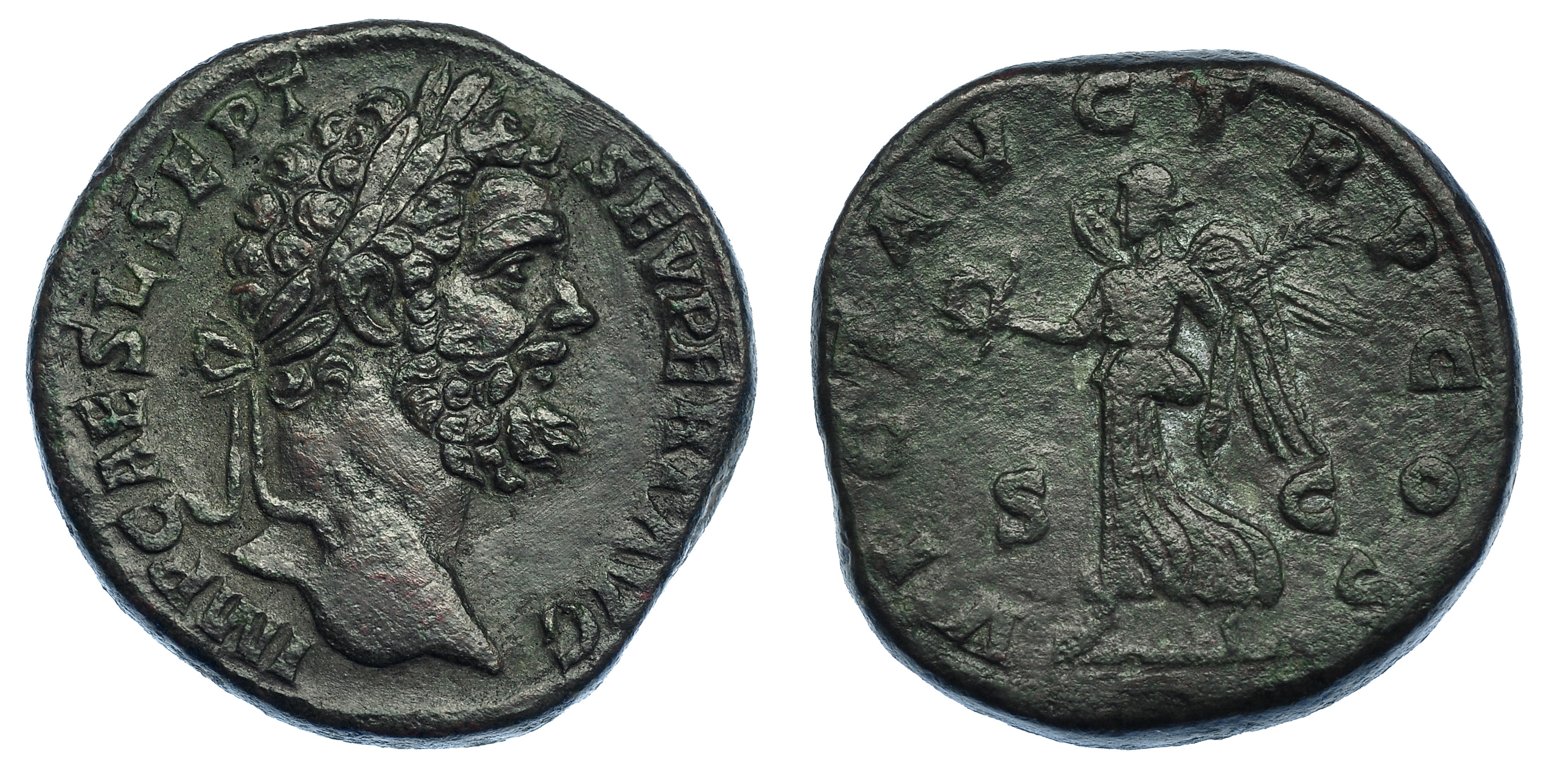 SEPTIMIO SEVERO. Sestercio. Roma (193). R/ Victoria avanzando a izq. con corona y palma; VICT AVG TR P COS, S-C. RIC-656. Trazas de limpieza mecánica. MBC+/MBC-.