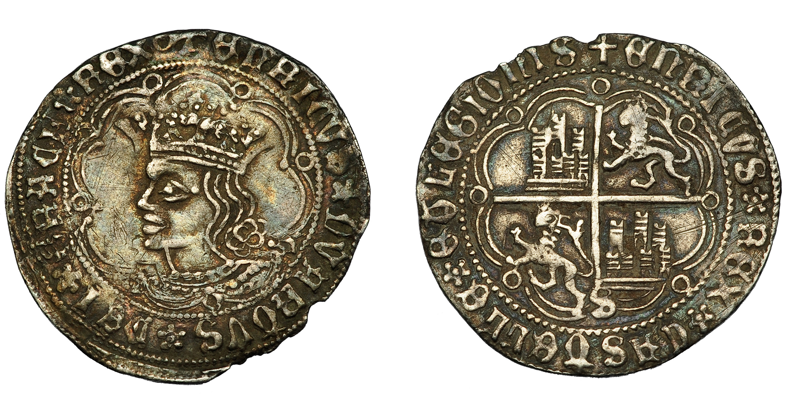 REINOS DE CASTILLA Y LEÓN. ENRIQUE IV. Real. Sevilla. S en la parte inferior de eje vertical. AR 3,17 g. 27,56 mm. III-685. BMM-894.1. Pequeña rotura al borde y pequeñas marcas. MBC.