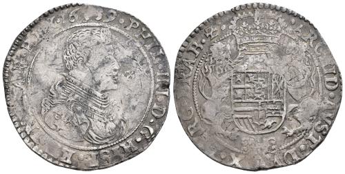 FELIPE IV. Ducatón. 1659. Bruselas. AR 32,21 g. 43,15 mm. Vanhoudt-642BS. Plata agria. MBC-.