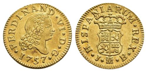 FERNANDO VI. 1/2 escudo. 1757. Madrid. JB. AU 1,77 g. 15,2 mm. VI-416. EBC+/SC.