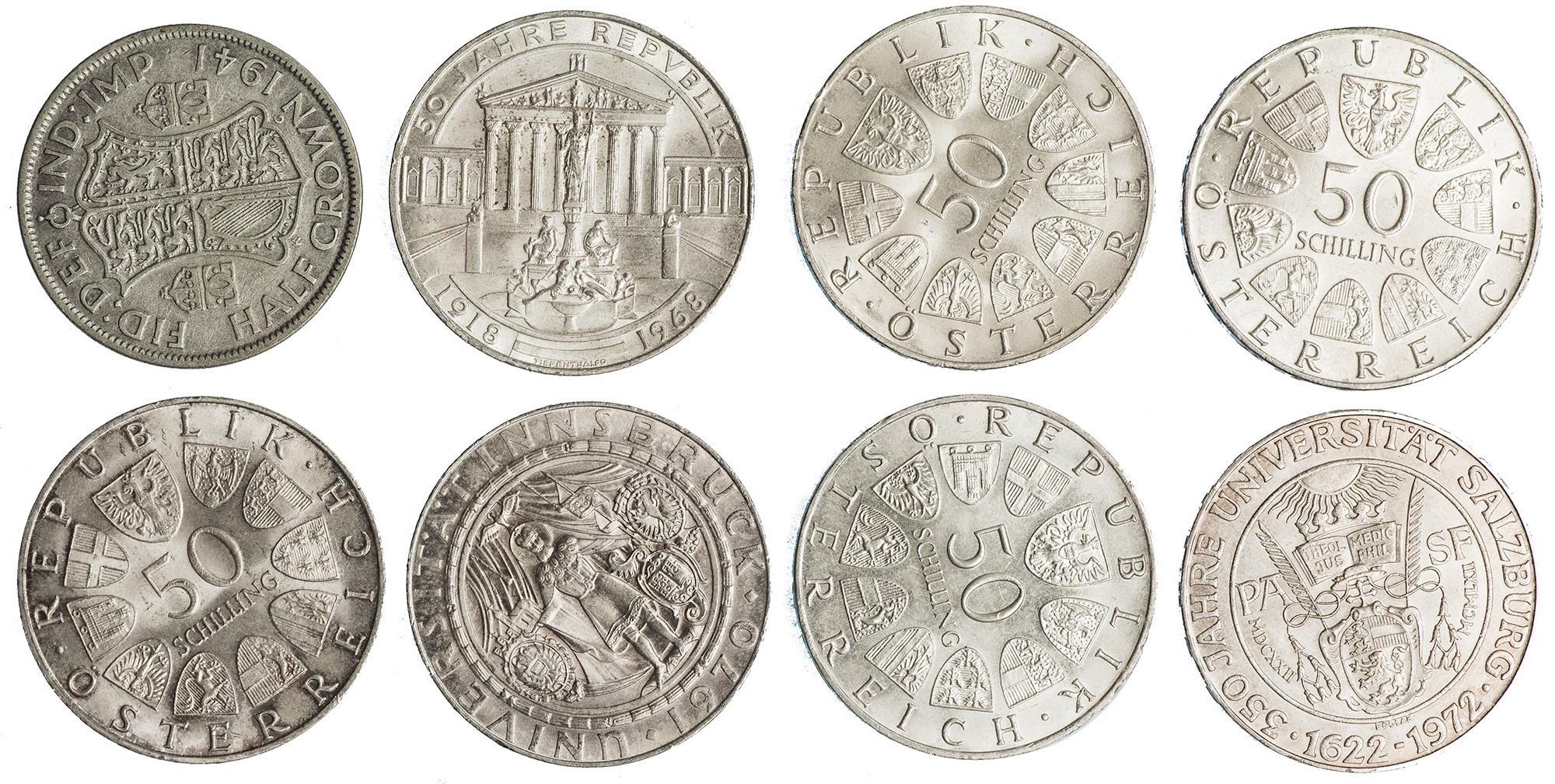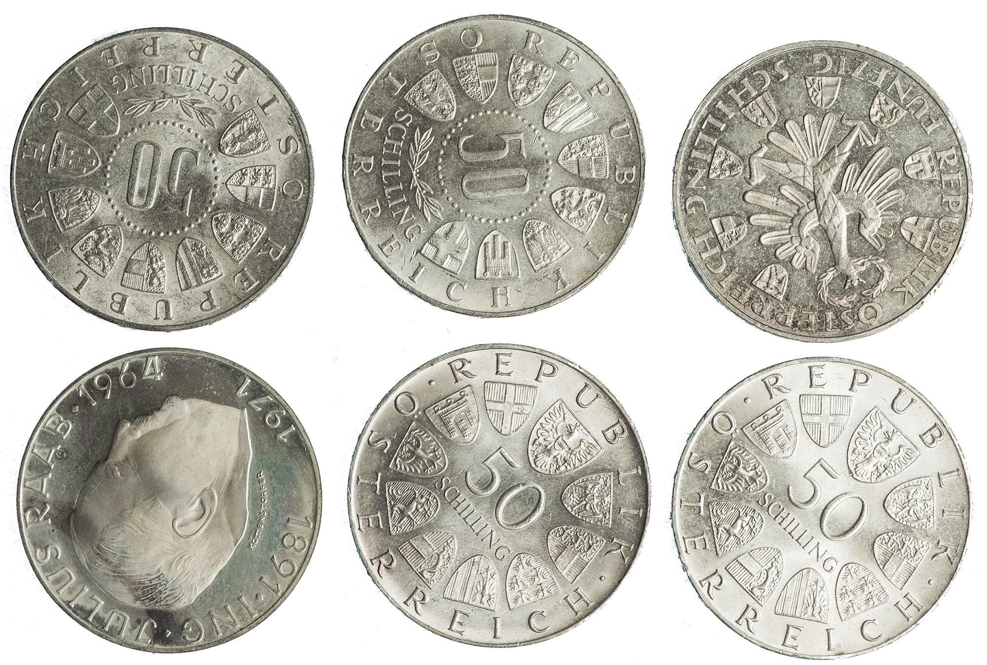 MONEDA EXTRANJERA. AUSTRIA. Lote de 19 piezas de 50 Schilling: 1959, 1963, 1964, 1965, 1966, 1967, 1968, 1969, 1970 (2), 1971, 1972 (2), 1973 (2), 1974 (4). SC/prueba.