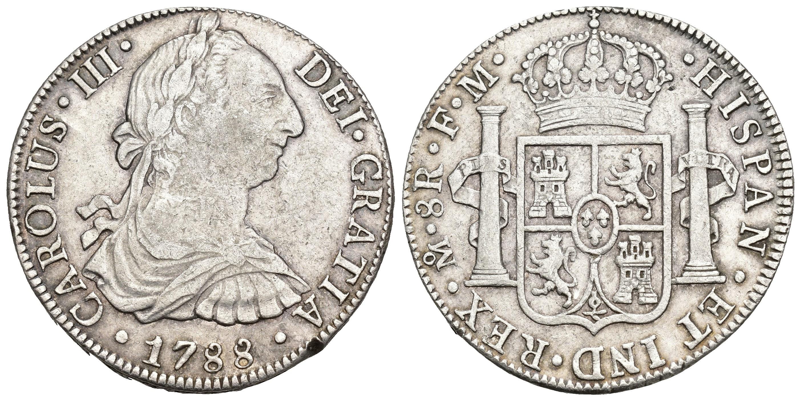 CARLOS III. 8 reales. 1788. México. FM. AR 26,9 g. 38,5 mm. VI-953. Golpecito en gráfila. MBC.
