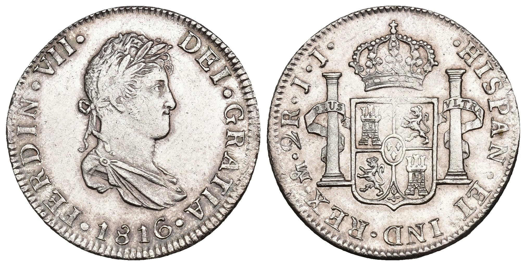 FERNANDO VII. 2 reales. 1816. México. JJ. AR 6,76 g. 27,5 mm. VI-725. B.O. EBC-.