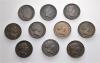 ISABEL II. Lote de 10 piezas de 10 céntimos de real de Segovia: 1855, 1856, 1857, 1858, 1859, 1860, 1861, 1862, 1863 y 1864. De BC+ a EBC+.