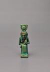 ARQUEOLOGÍA. EGIPTO. Baja Época. Amuleto de Isis y Horus (664-332 a.C.). Fayenza. Altura 4,7 cm. Fragmentado y restaurado. El tocado no corresponde con el original.