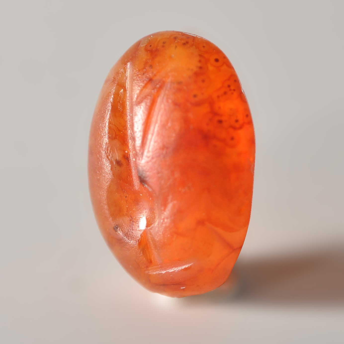 ROMA. Imperio Romano. Entalle con escudo y espada. Ámbar. Longitud 12,66 mm.