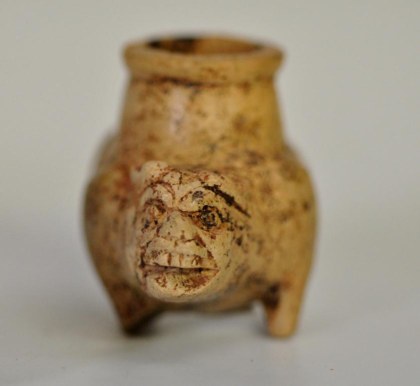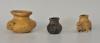 PREHISPÁNICO. Lote de 3 frascos medicinales y/o de tabaco. Dos de ellos con decoración zoomorfa. Cultura Maya (550-950 d.C). Terracota. Altura 3,2 cm a 4,5 cm.