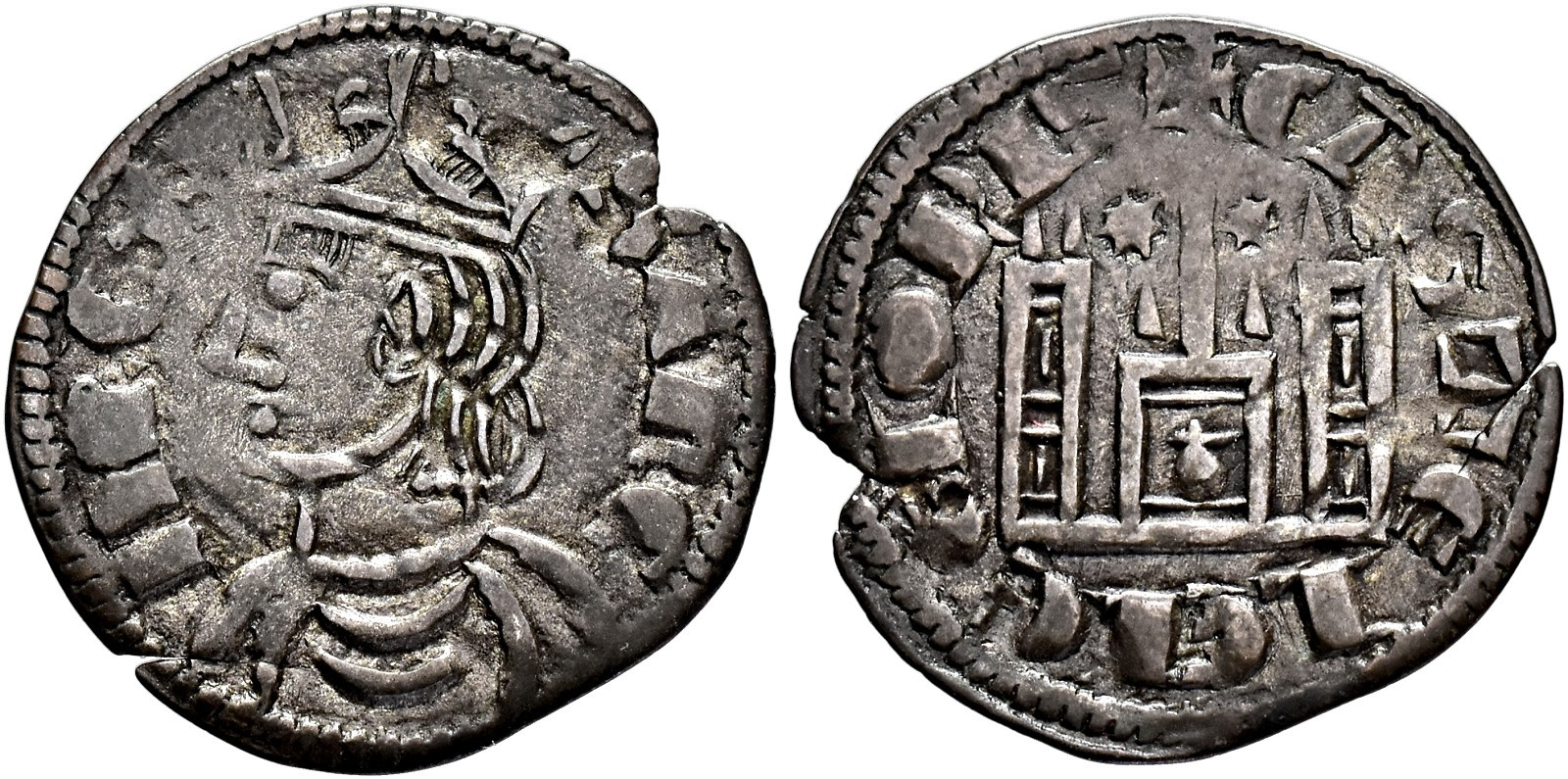REINOS DE CASTILLA Y LEÓN. SANCHO IV. Cornado. Coruña. *-* y venera en puerta, sin adorno en la corona. VE 0,78 g. 19,4 mm. III-297.2; BMM-428.2; Orol-ME.187 Pequeña grieta. MBC. Muy escasa.