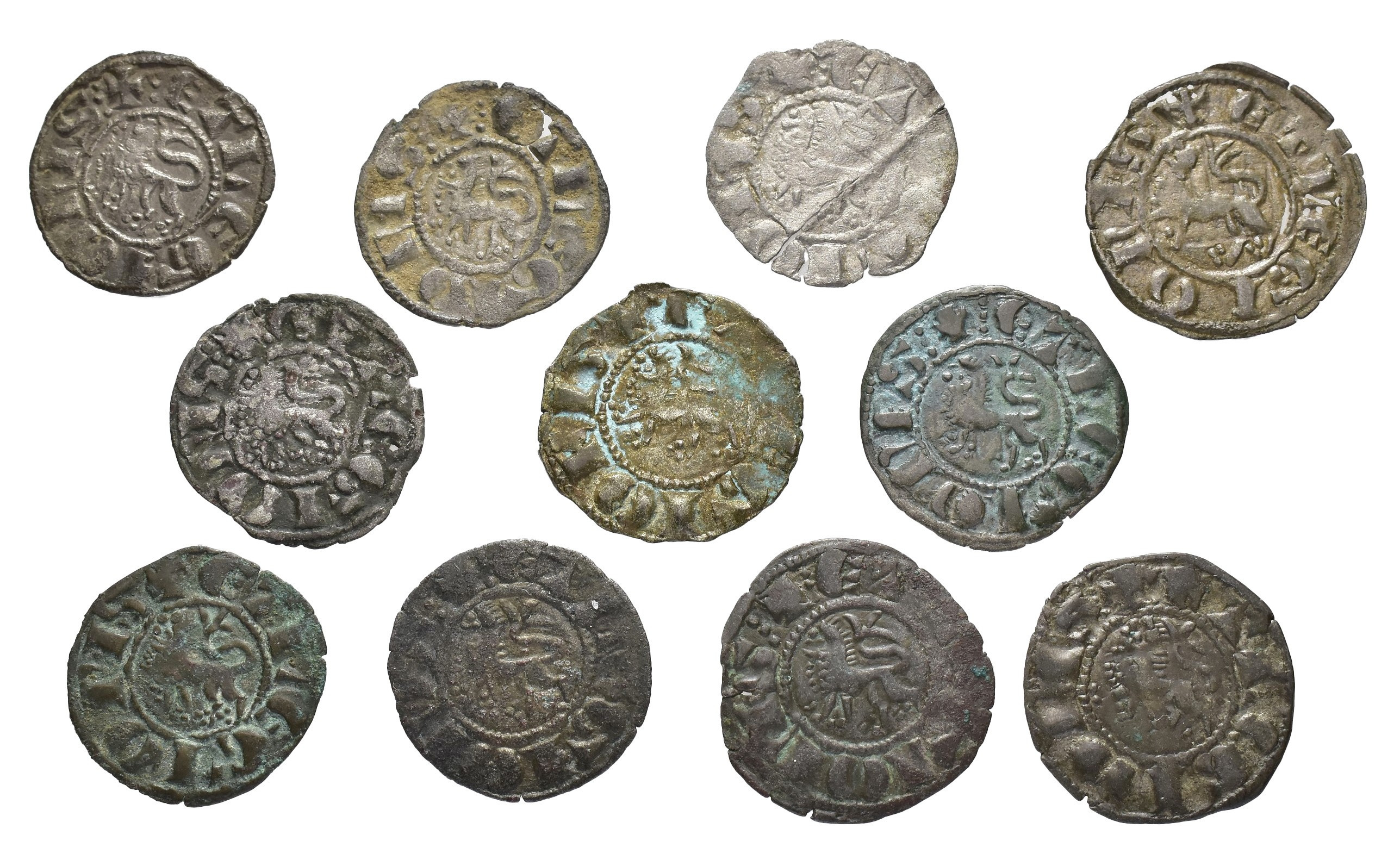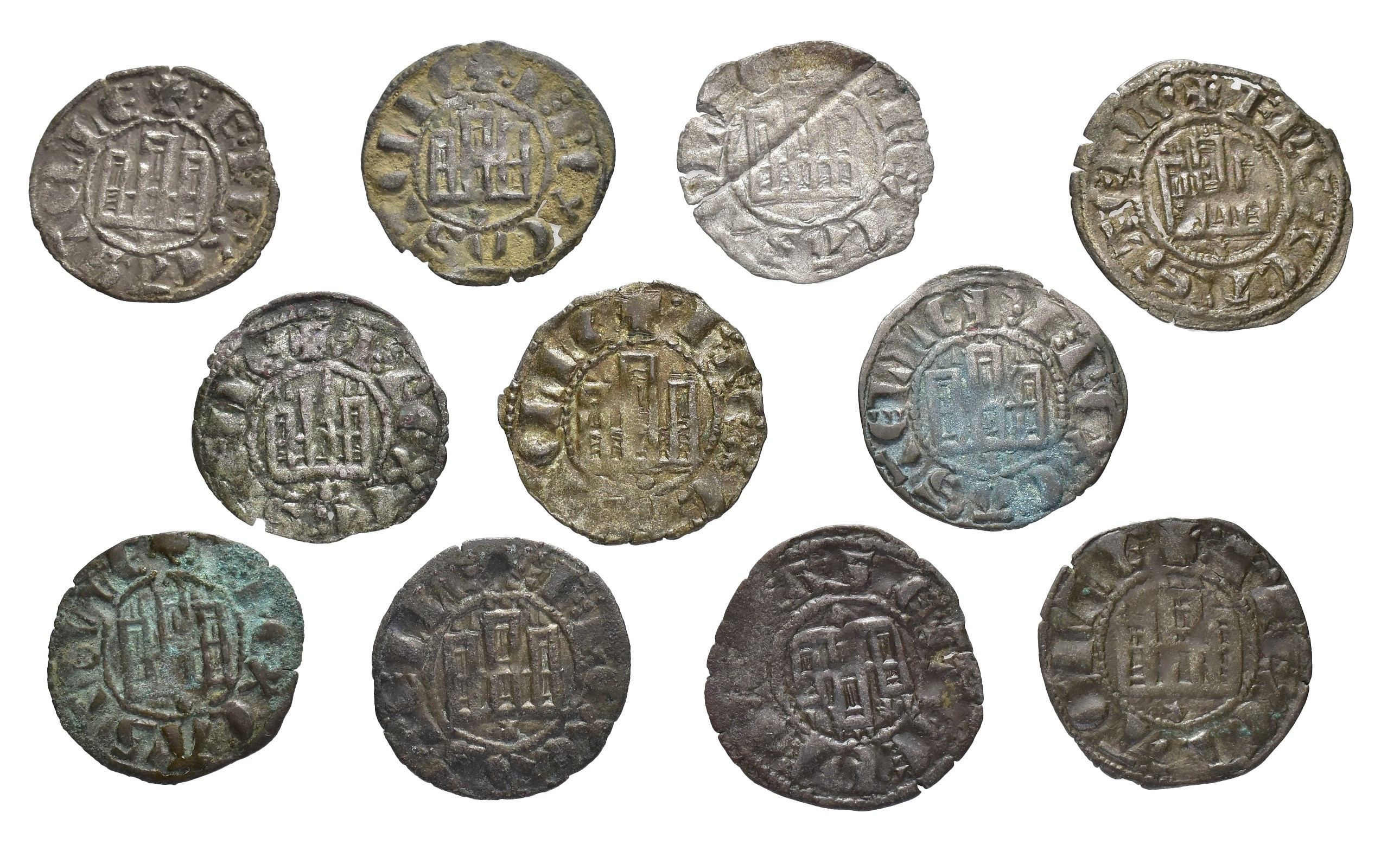 REINOS DE CASTILLA Y LEÓN. FERNANDO IV. Lote de 11 dineros, Coruña. Orol-ME.279, 281, 283, 288, 290, 292, 295, 297, 302, 307 y 309. De BC+ a MBC+.