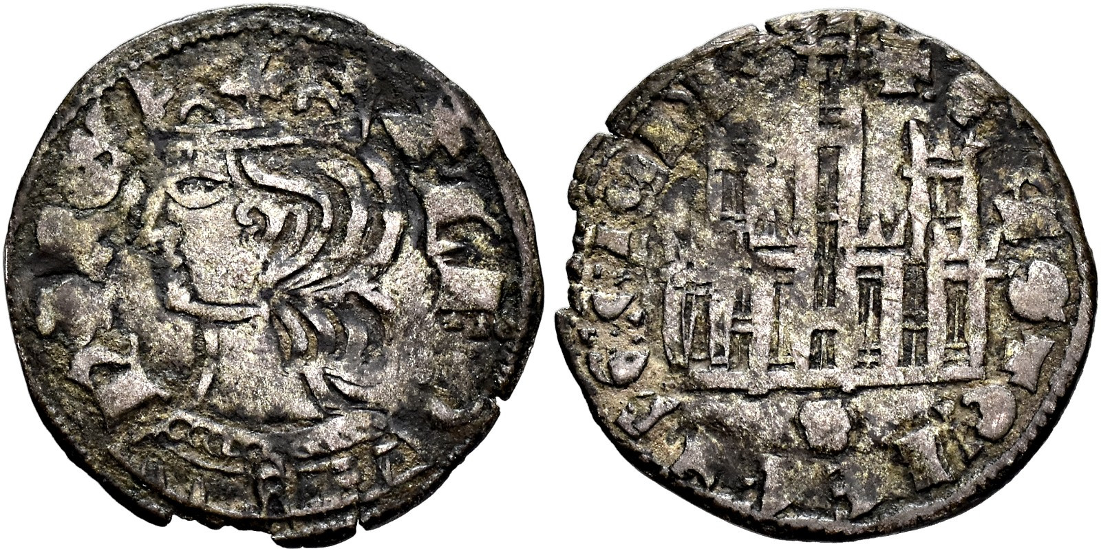REINOS DE CASTILLA Y LEÓN. ALFONSO XI. Cornado. ¿Sevilla? VE 1,08 g. 19,2 mm. III-340; BMM-477; Orol-ME.401. Pequeña rotura al borde. MBC/MBC-.