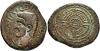 HISPANIA ANTIGUA. EMISIONES DEL NOROESTE. AUGUSTO. As. A/ Cabeza a izq., delante palma, detrás caduceo; (IMP AV)G DIVI F, poco visible. R/ Rodela, alrededor dos círculos concéntricos unidos por líneas. AE 9,94 g. 28,7 mm. I-1703; APRH-4; ACIP-3302; Orol-AN.35, mismo ejemplar. Superficies erosionadas. MBC.