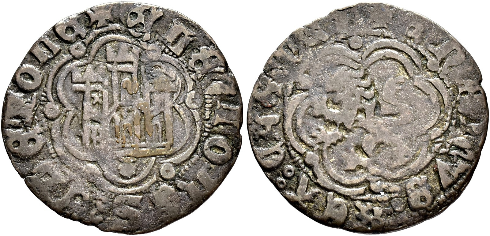 REINOS DE CASTILLA Y LEÓN. ENRIQUE III. Blanca. Coruña. Venera en posición correcta. A/ + ELEGIONIS: EDETOLE. VE 1,69 g. 22,5 mm. III-599.1; BMM-766.5; Orol-ME.583 BC+/MBC-. Rara.