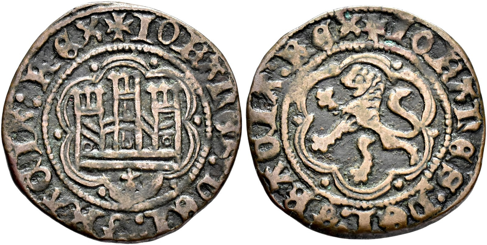 REINOS DE CASTILLA Y LEÓN. JUAN II. Blanca. Coruña. Venera antigua. VE 2,69 g. 22,7 mm. III-626 var.; BMM-813.1; Orol-ME.639. MBC.