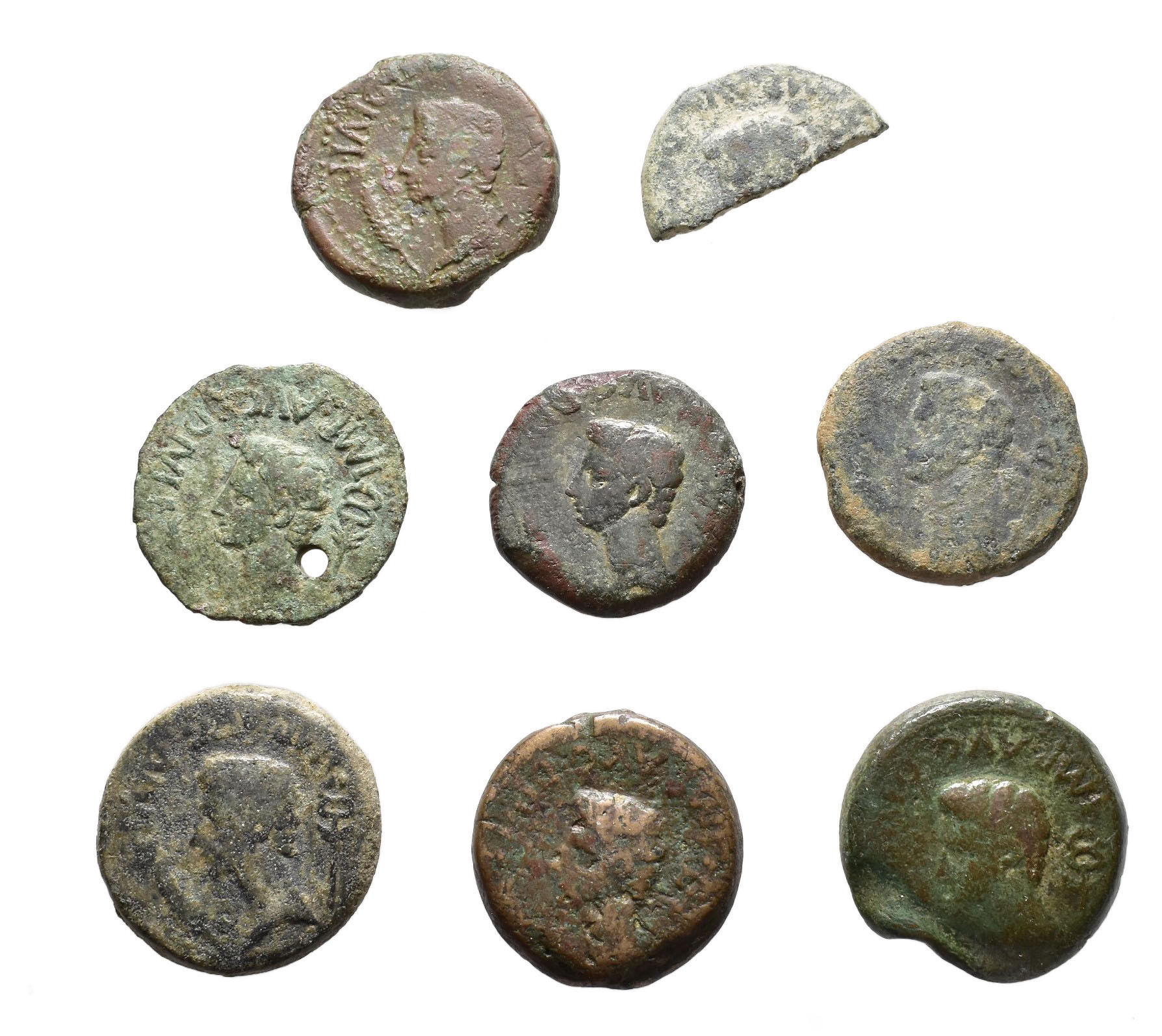 HISPANIA ANTIGUA. EMISIONES DEL NOROESTE. Lote de 8 piezas: 7 ases y una mitad, todos tipo APRH-3. Orol-AN.10,13,16,19,23 y 24. Una con agujero. RC/BC+.