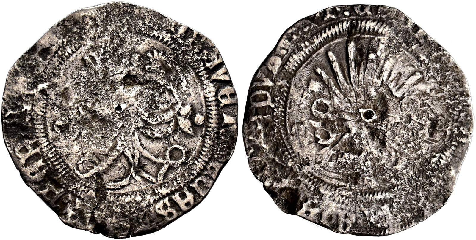 REYES CATÓLICOS. 1/2 real. Coruña. Marcas venera-A gótica en anv. AR 1,58 g. 21,4 mm. AC-198; Orol-MO.28 Erosiones. RC. Escasa.