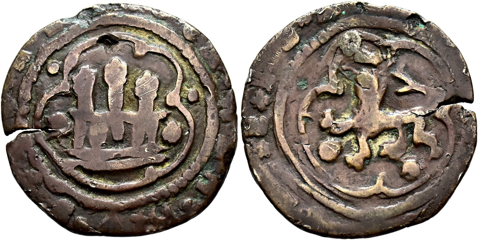 REYES CATÓLICOS. 4 maravedís. Coruña. Venera a cada lado del castillo y venera y A en rev. CU 6,21 g. 28,4 mm. RS-no. Orol-MO.59 Grieta y punzón. BC+/MBC-. Rara.