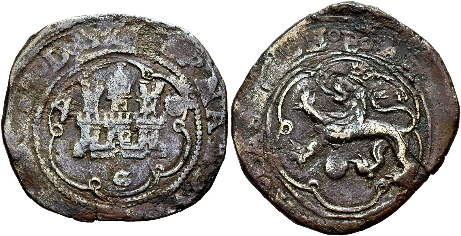 REYES CATÓLICOS. 4 maravedís. Coruña. Valor, venera y S en anv. Venera en rev. CU 6,68 g. 29,6 mm. RS-123; Orol-MO.120 MBC-/MBC. Escasa.