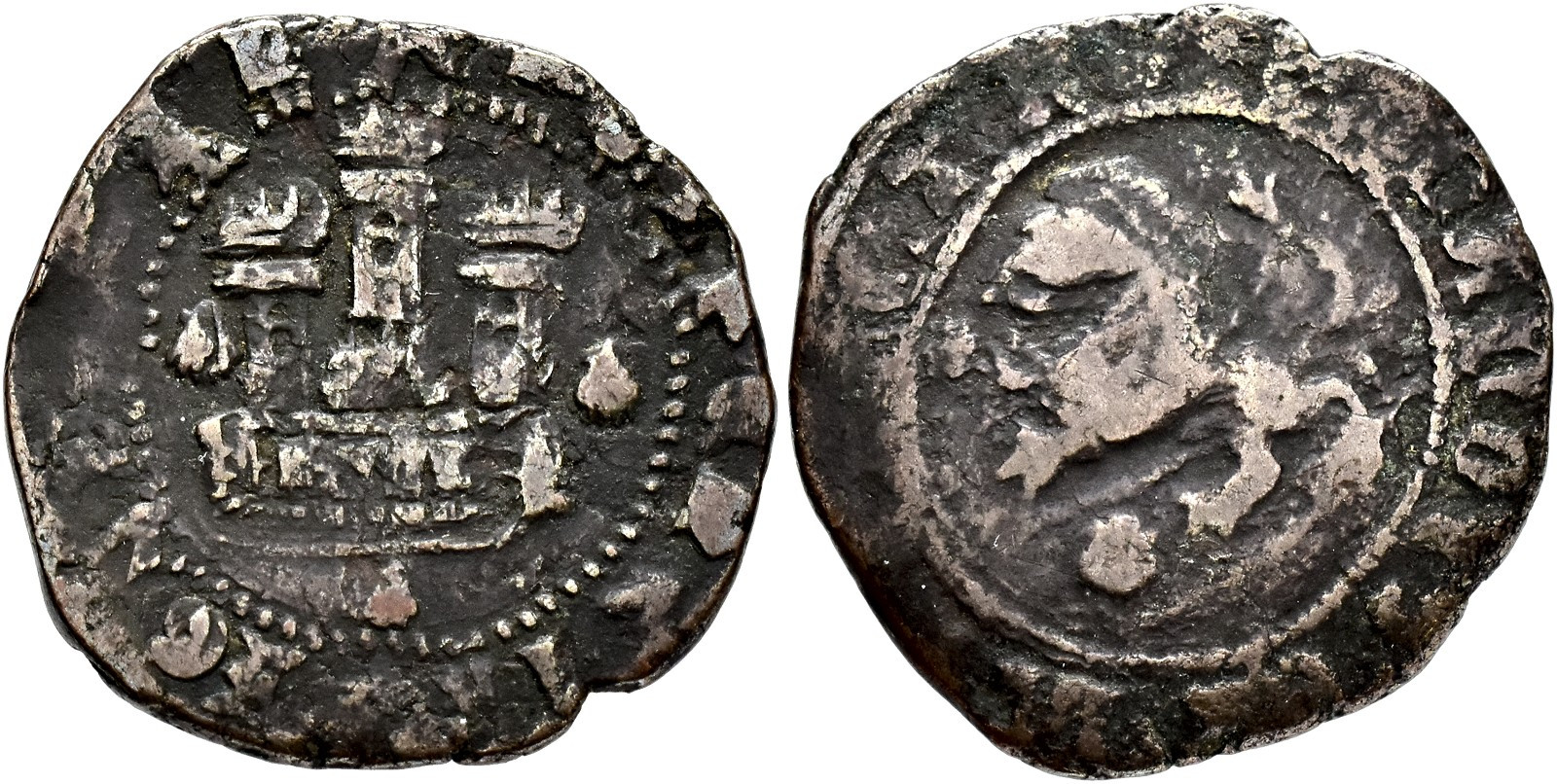REYES CATÓLICOS. 2 maravedís. Coruña. Tres veneras en anv. y una en rev. CU 3,98 g. 23,9 mm. RS-no. ¿Inédita? Orol-MO.160 BC+.