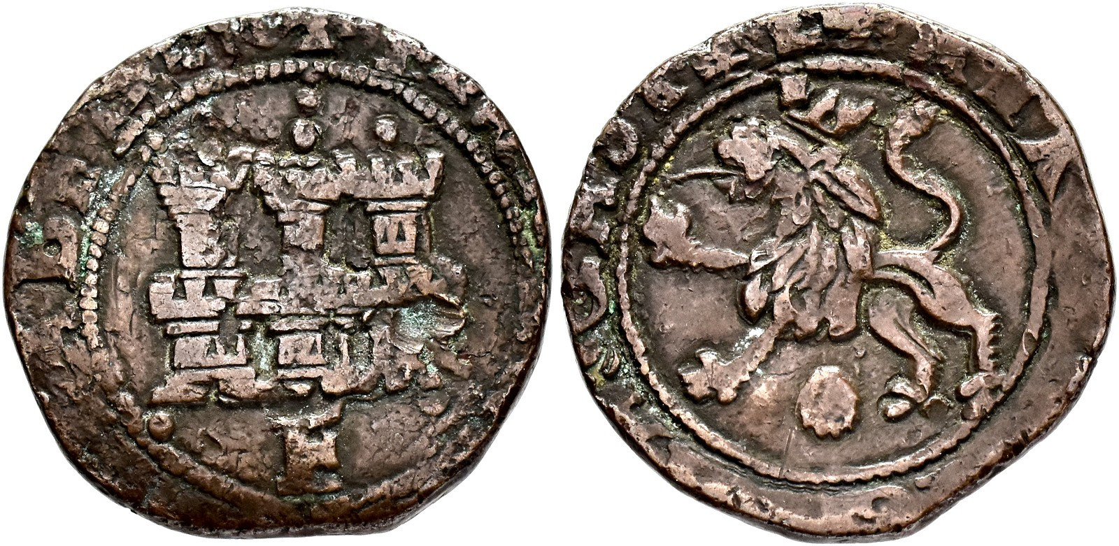 REYES CATÓLICOS. 2 maravedís. Coruña. F. CU 5,2 g. 23,2 mm. RS-212; Orol-MO.261. Golpe en anv. MBC.