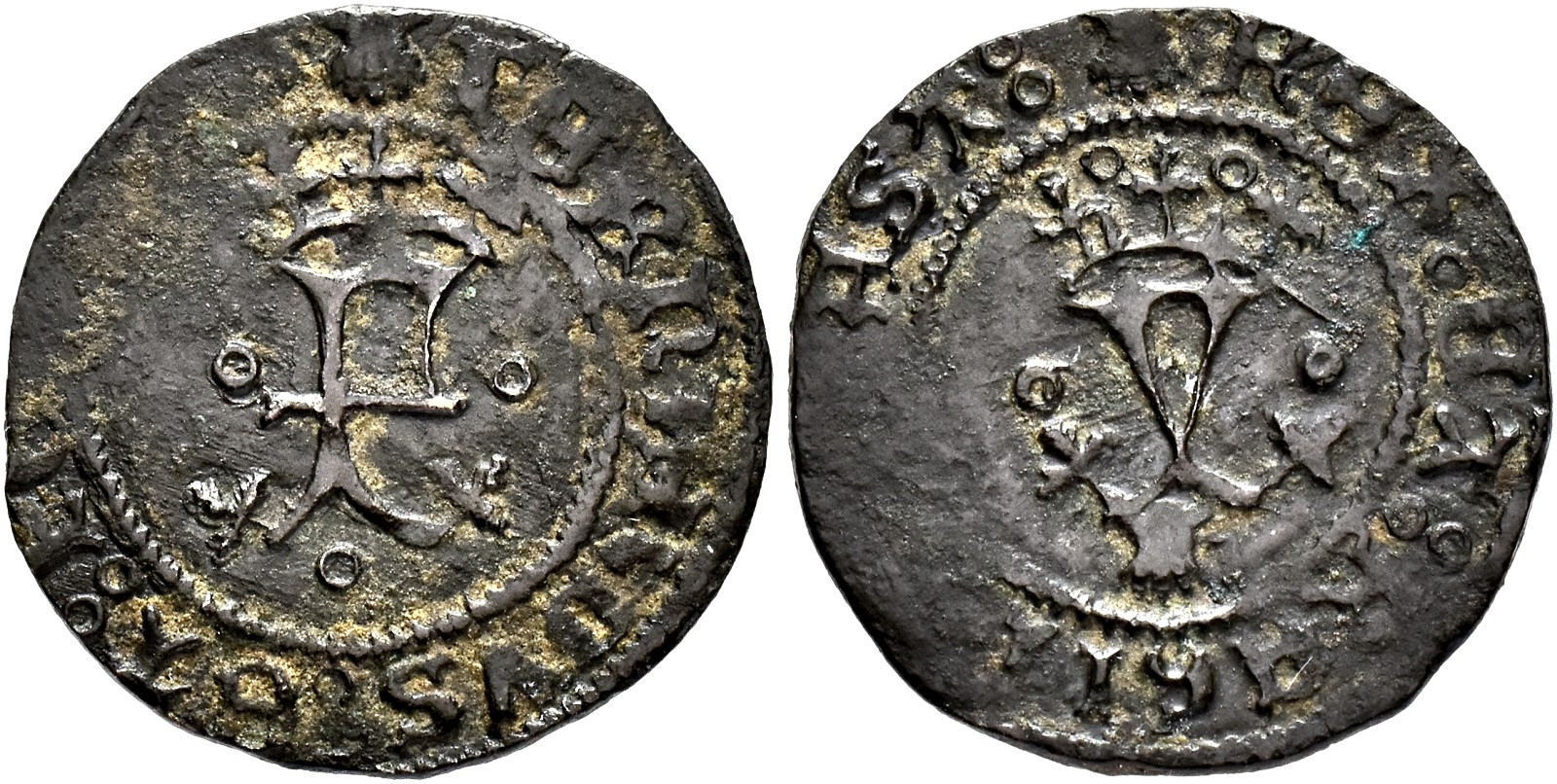 REYES CATÓLICOS. Blanca. Coruña. Venera en rev. y al principio de la ley. del anv. y rev. CU 1,32 g. 17,9 mm. RS-280; Orol-MO.30. Vanos. MBC. Escasa en esta conservación.
