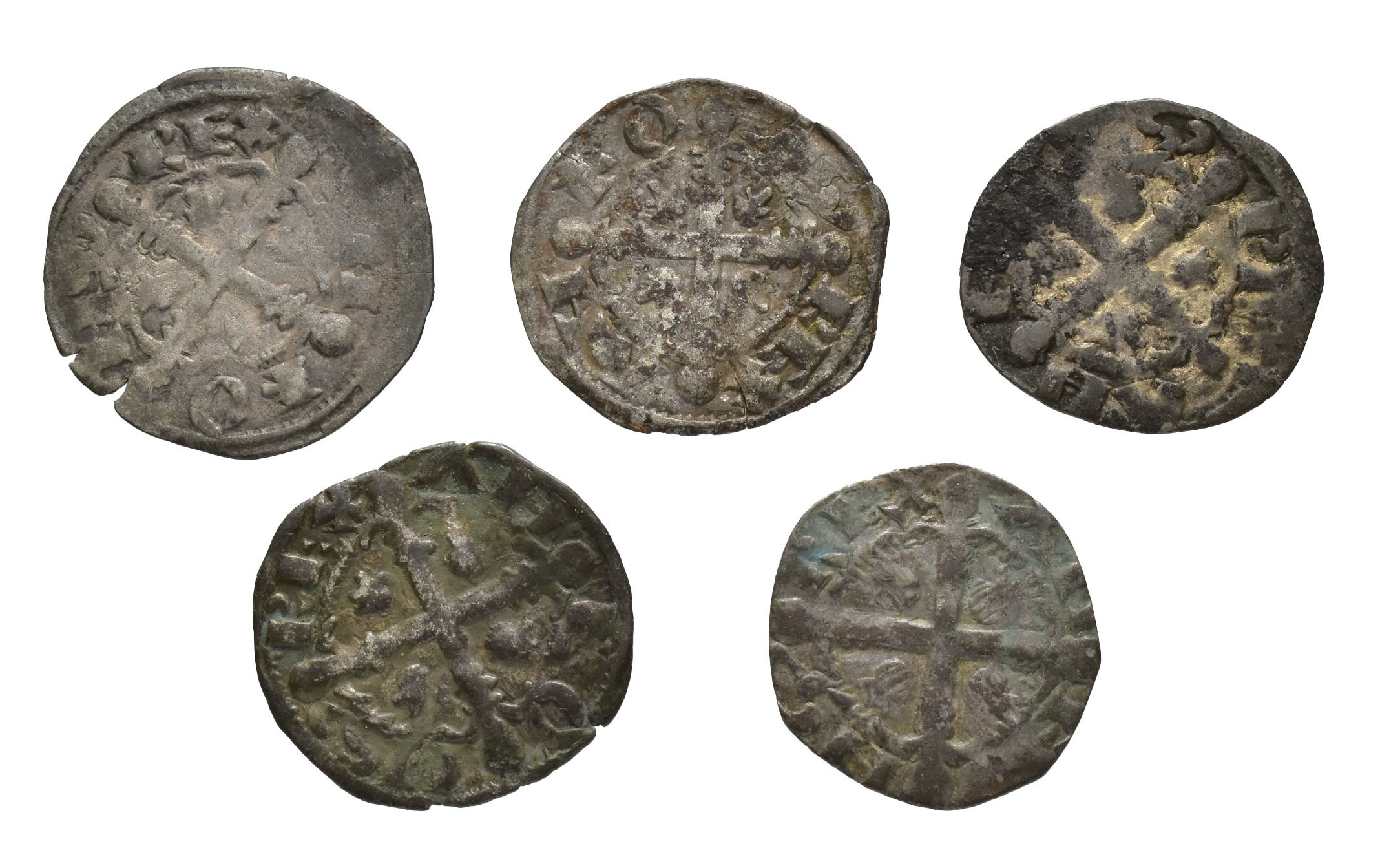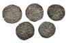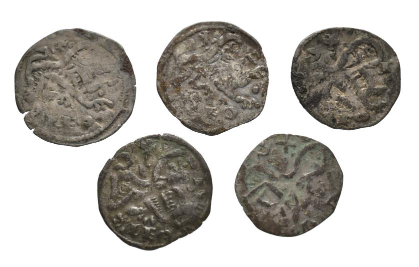 REINOS DE CASTILLA Y LEÓN. ALFONSO IX. Lote de 5 dineros, Santiago. Orol-ME.57, 58, 61, 62 y 63. BC+/MBC-.
