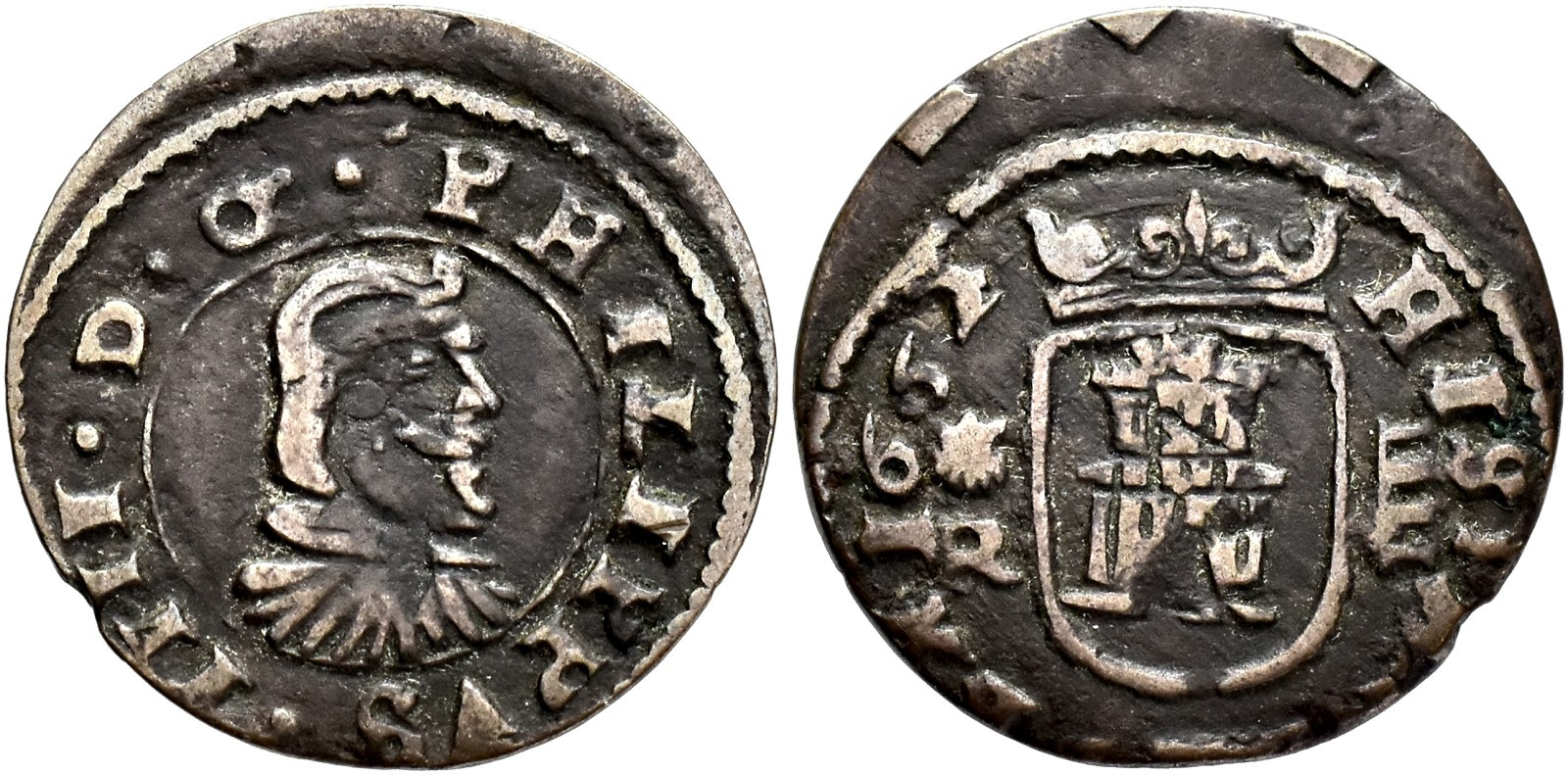 FELIPE IV. 4 maravedís. 1662. Coruña. R. Venera a la izq. CU 1,06 g. 17,7 mm. AC-198. Orol-MO.635 MBC.