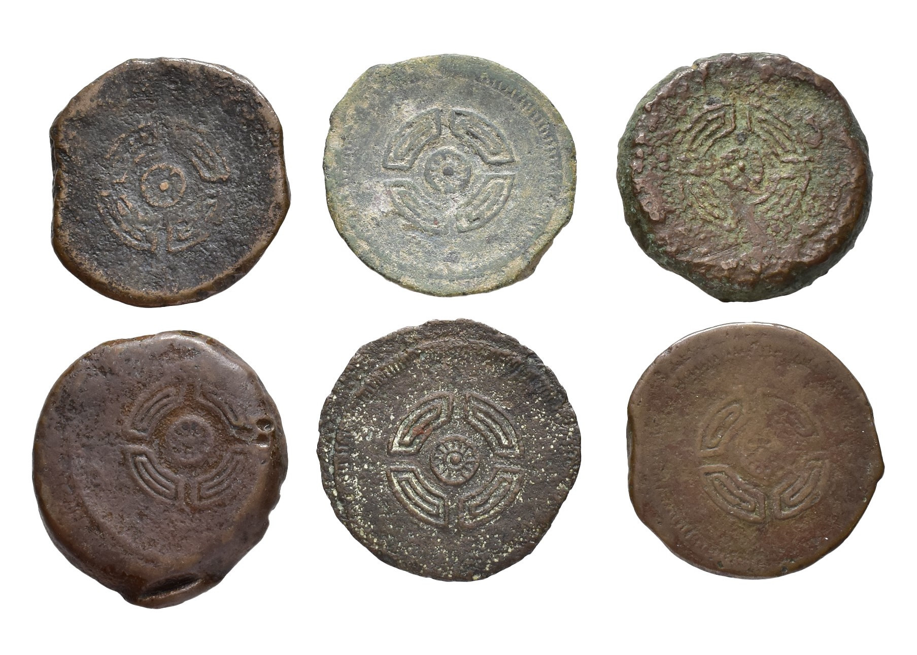 HISPANIA ANTIGUA. EMISIONES DEL NOROESTE. Lote de 6 ases, todos tipo ARRH-3. Orol-AN.9,12,14,18,21 y 22. BC-/BC+.