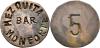FICHA COMERCIAL. Contramarca BAR MEZQUITA MONFORTE con valor 5 en anv. sobre 10 cts. Alfonso XII. 8,65 g. 31,7 mm. Orol-FL.16. La contramarca MBC. Muy interesante.