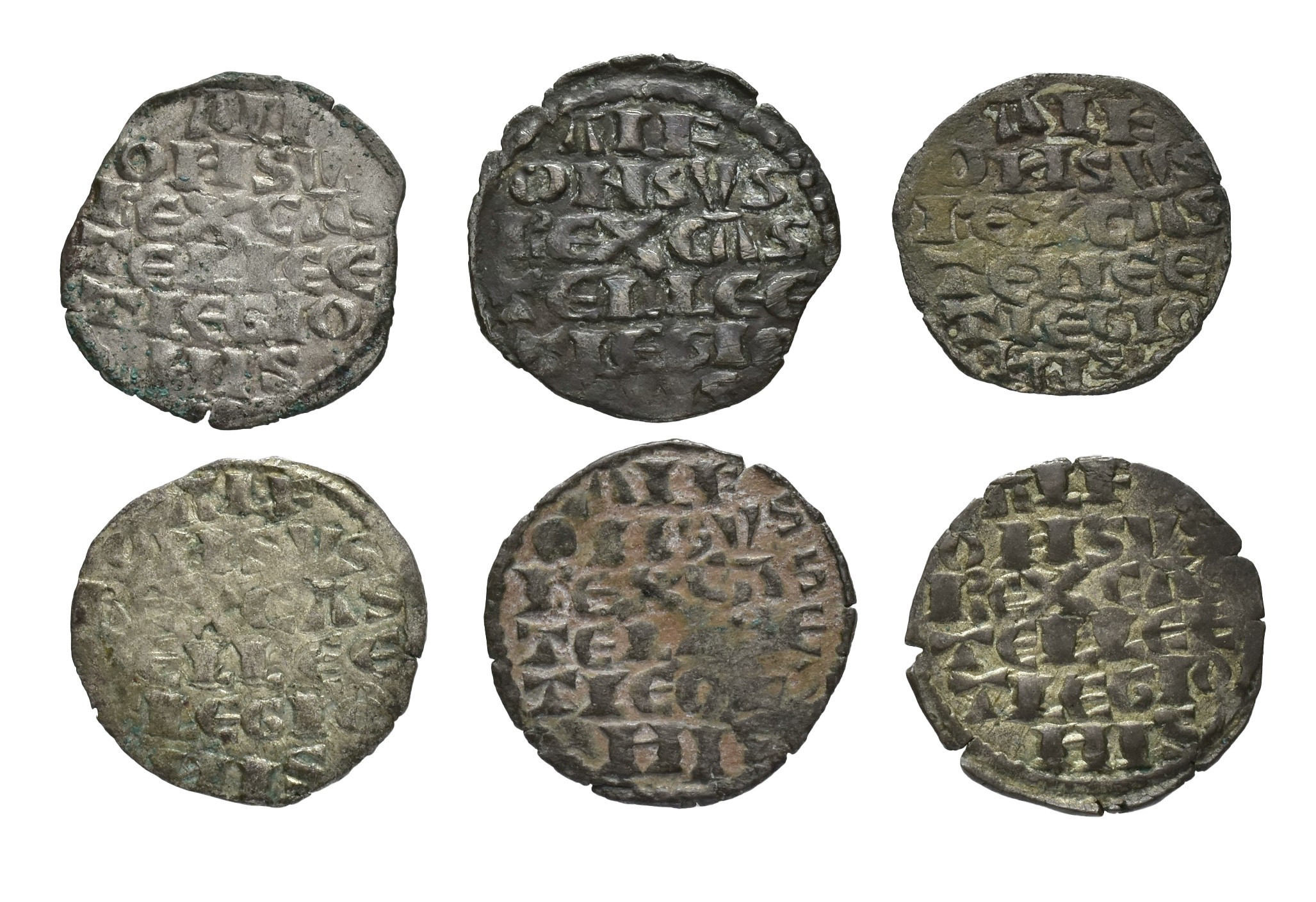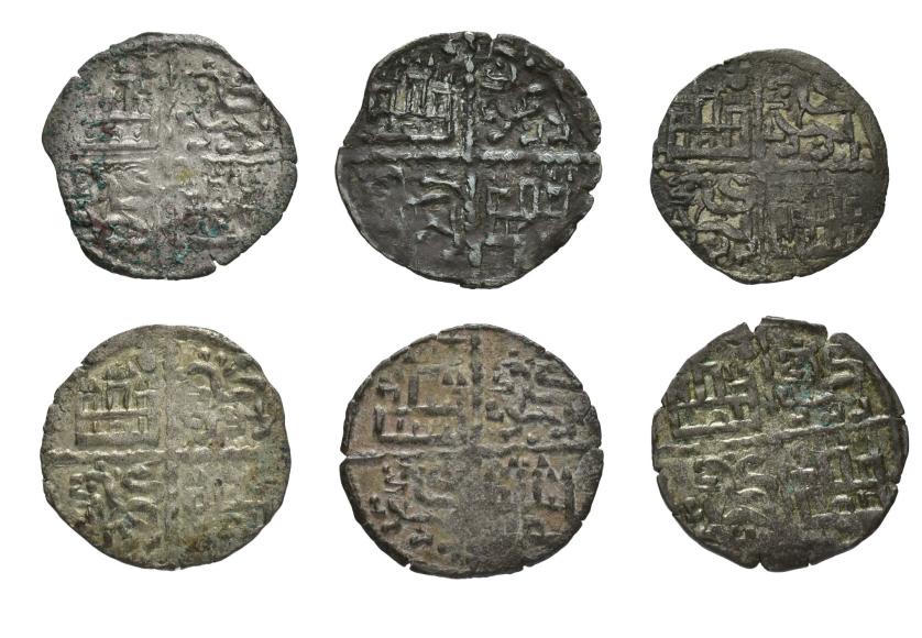 REINOS DE CASTILLA Y LEÓN. ALFONSO X. Lote de 6 dineros, Coruña, marca venera. Orol-ME.82, 85, 87, 88, 91 y 92. MBC-/MBC+.