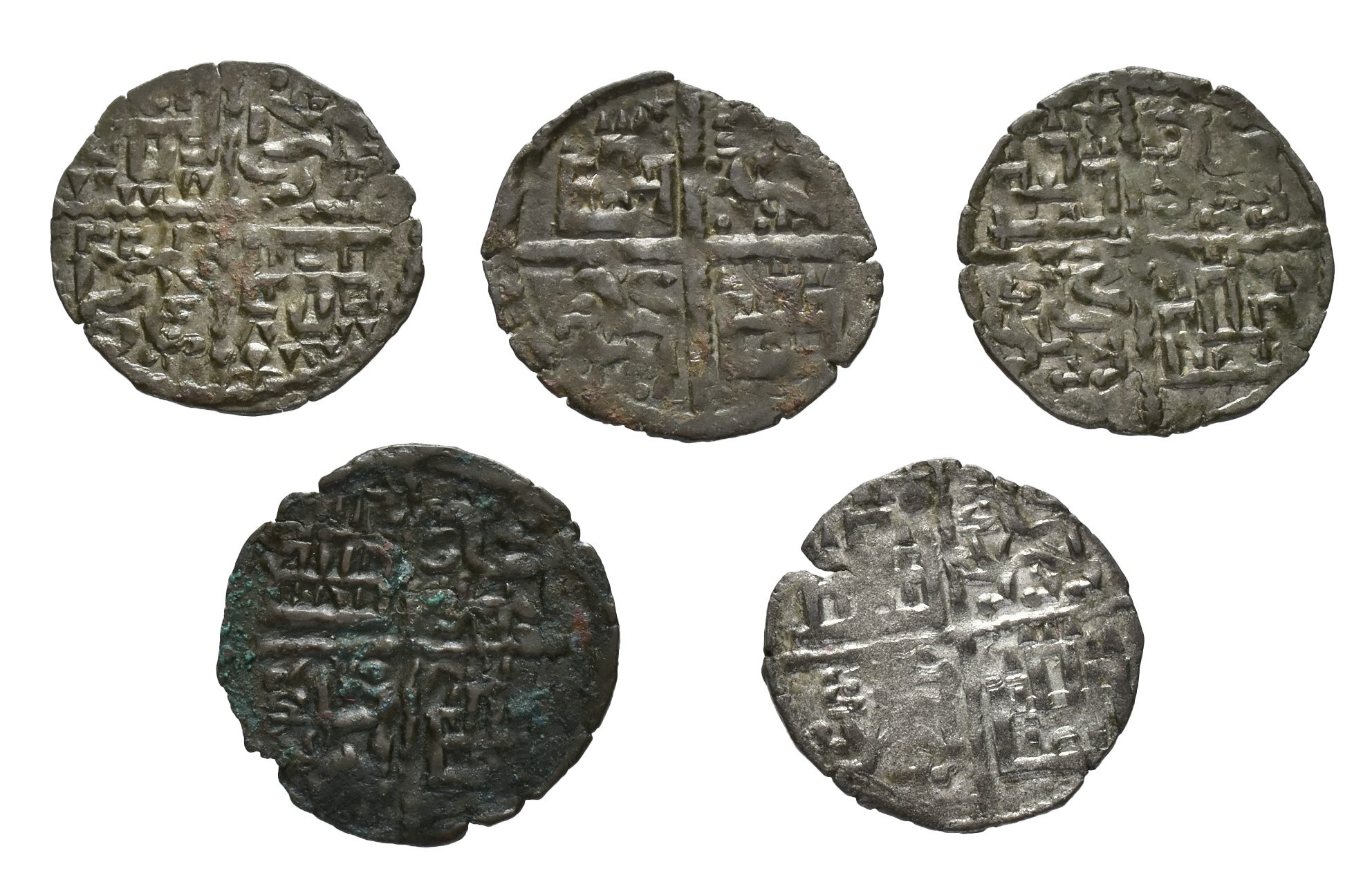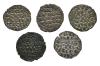 REINOS DE CASTILLA Y LEÓN. ALFONSO X. Lote de 5 dineros, Coruña, marca venera. Orol-ME.80, 86, 93, 95, 99. MBC/MBC+.