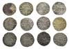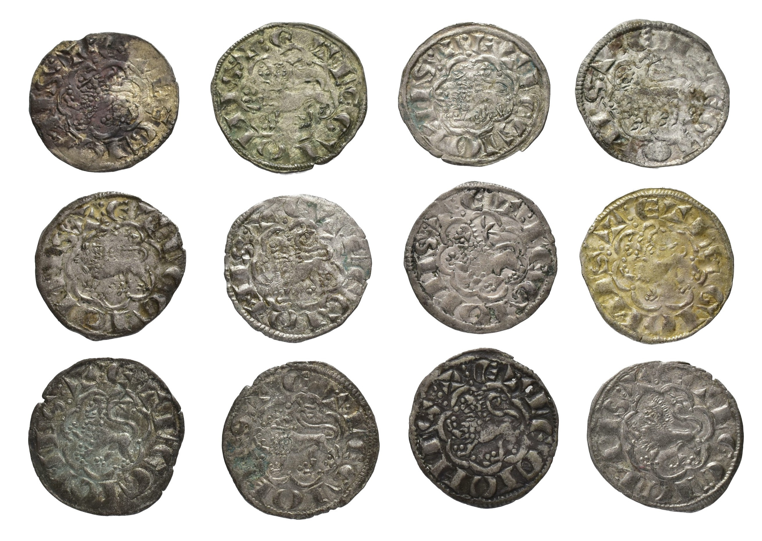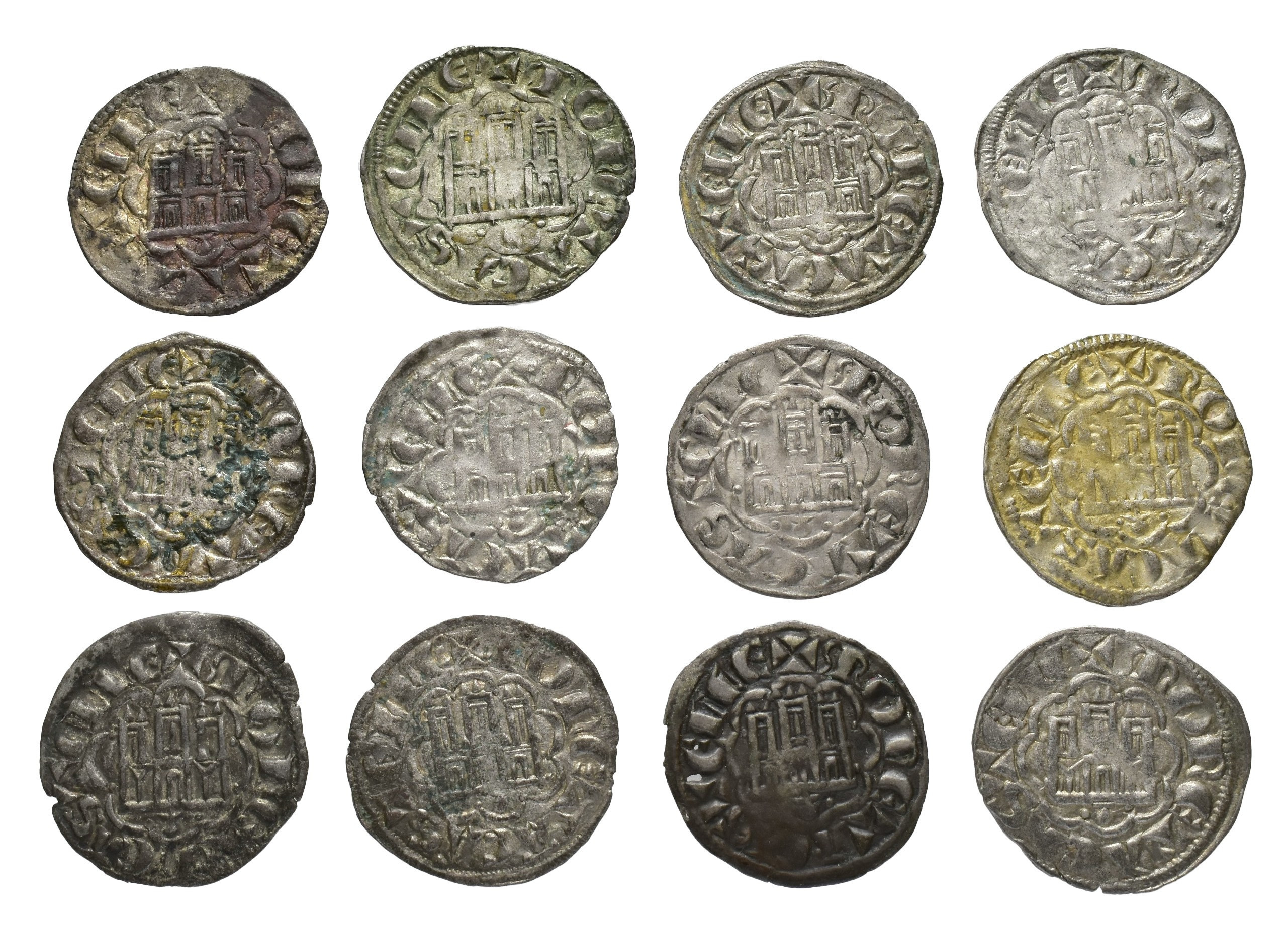 REINOS DE CASTILLA Y LEÓN. ALFONSO X. Lote de 12 dineros seisenes, Coruña. Orol-ME.130, 133, 137, 139, 142, 144, 146, 149, 156, 159, 160 y 165. MBC-/MBC+.