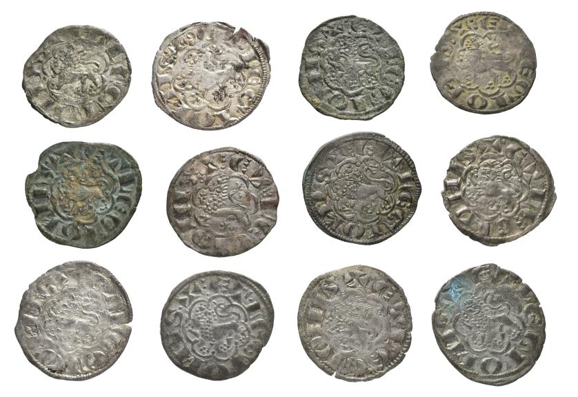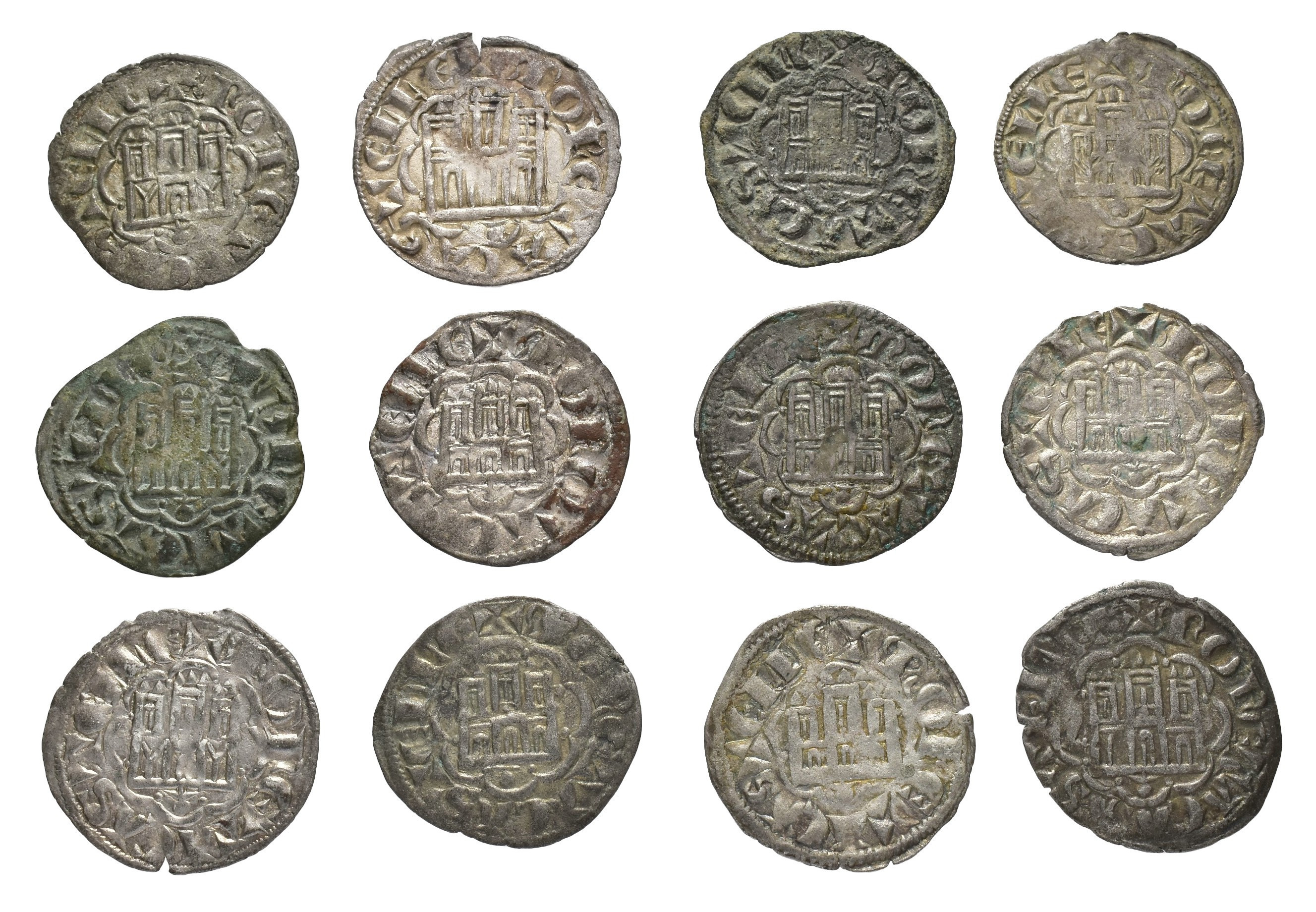 REINOS DE CASTILLA Y LEÓN. ALFONSO X. Lote de 12 dineros seisenes, Coruña. Orol-ME.127, 131, 136, 138, 140, 143, 145, 147, 153, 157, 163 y 167. MBC-/MBC+.