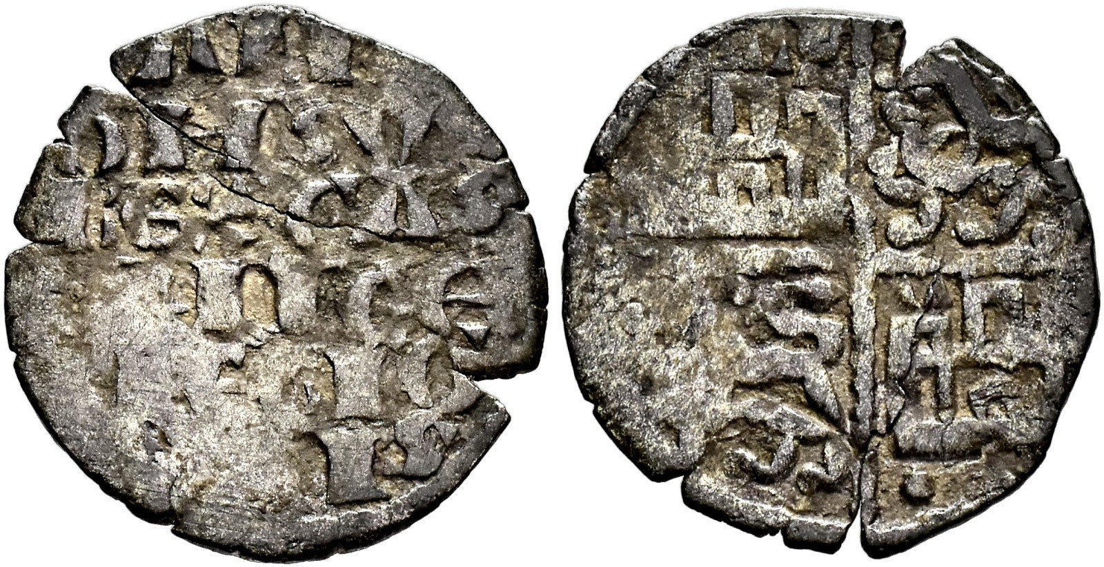 REINOS DE CASTILLA Y LEÓN. ALFONSO X. Dinero. Coruña. Marca venera y punto en tercer cuartel. VE 0,8 g. 16,4 mm. III-230.1; BMM-361.3; Orol-ME.101 Cospel abierto. Vanos. MBC. Muy escasa.