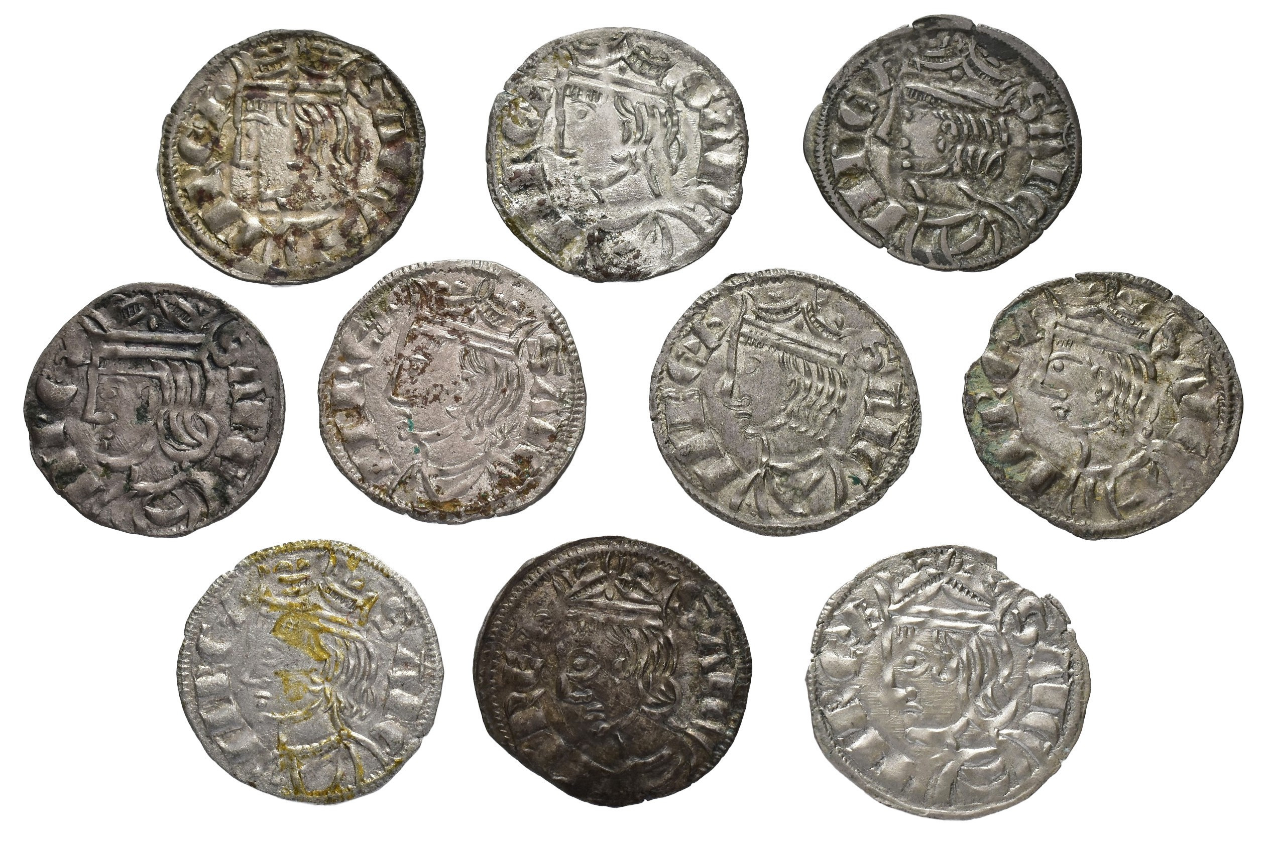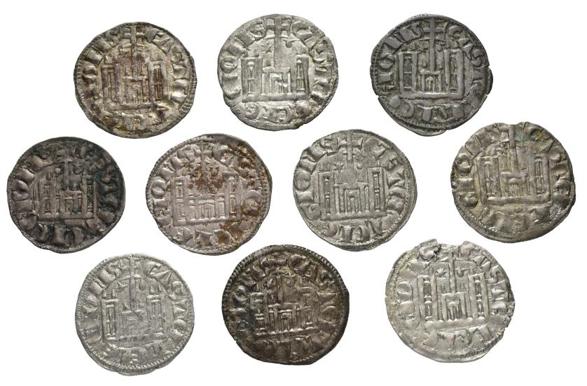 REINOS DE CASTILLA Y LEÓN. SANCHO IV. Lote de 10 cornados, Coruña, *-venera con variantes de adorno en la corona. Orol-ME.188, 196, 197, 199, 205, 208, 211, 212, 221 y 226. De MBC a EBC.