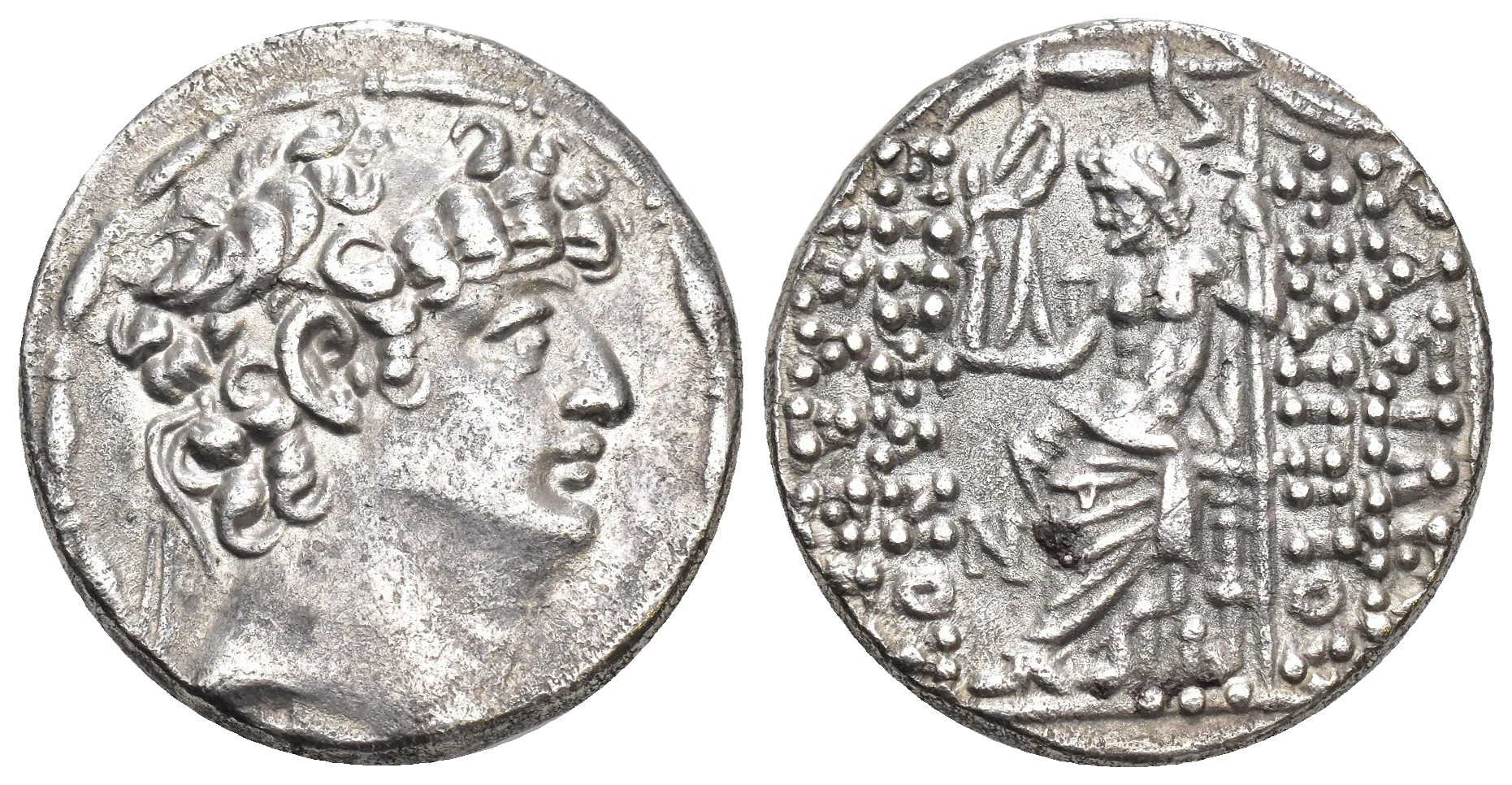 GRECIA ANTIGUA. REYES SELÉUCIDAS. Filipo I Filadelfo. Tetradracma (95-83 a.C.). A/ Cabeza diademada a der. R/ Zeus entronizado a izq., delante N, bajo el trono monograma. AR 15,45 g. 25,4 mm. COP-425 var. monogr.; SBG-7196 var. MBC+.