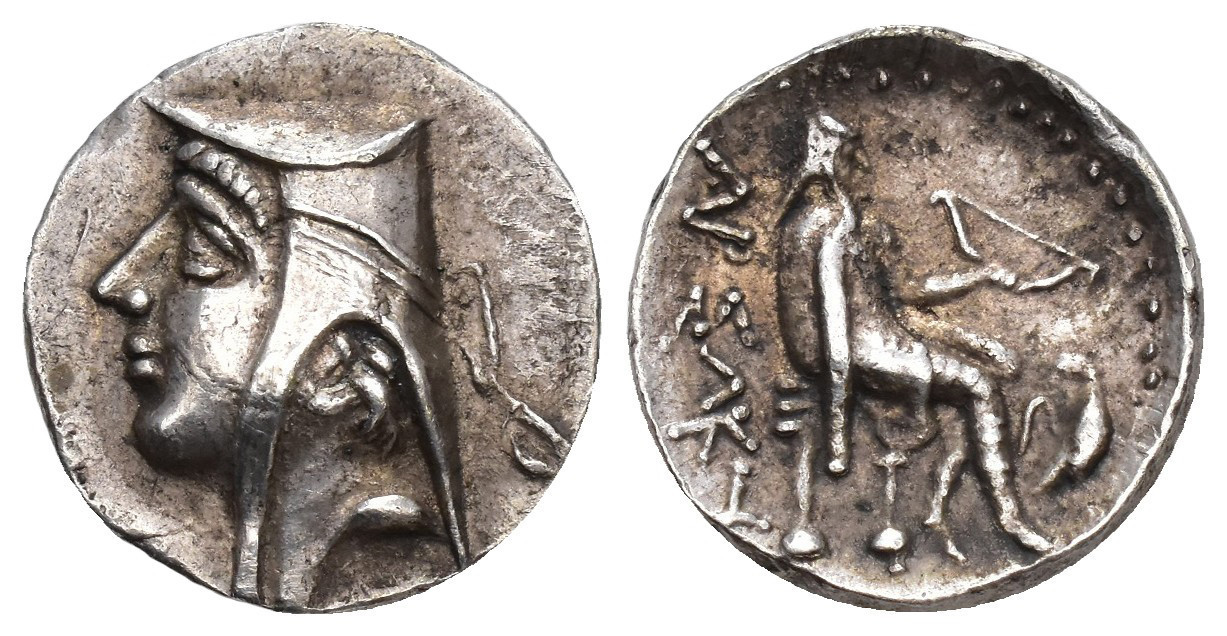 GRECIA ANTIGUA. PARTIA. Arsaces II. Rhagae (?). Dracma (211-191 a.C.). A/ Cabeza con bablyka a izq. R/ Arquero sentado a der., delante águila, detrás ARSAKU. AR 3,9 g. 16,4 mm. SEP-601. EBC-/MBC+.