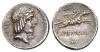 REPÚBLICA ROMANA. CALPURNIA. L. Calpurnius Piso Frugi. Denario. Roma (90-89 a. C.). A/ Cabeza de Apolo a der., detrás de la cabeza XXXXIII. R/ Jinete a der., ancla y número encima, debajo L PISO FRVGI/ROMA en monograma. AR 3,87 g. 19 mm. CRAW-340.1; FFC-240. MBC+.