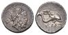 REPÚBLICA ROMANA. LUCRETIA. L. Lucretius Trio. Denario. Roma (76 a.C.). A/ Cabeza de Neptuno laureada a der., detrás tridente, delante AT. R/ Cupido cabalgando delfín a der.; LVCRETI/TRIO. AR 4,26 g. 17,8 mm. CRAW-390.2; FFC-824. EBC-.