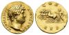 IMPERIO ROMANO. ADRIANO. Áureo. Roma (124-125). A/ Cabeza laureada a der.; HADRIANVS AVGVSTVS. R/ Sol conduciendo cuadriga a izq.; COS-III. AU 7,29 g. 18,9 mm. RIC-726; Cal-1209. Golpes en canto. EBC-. Muy escasa.