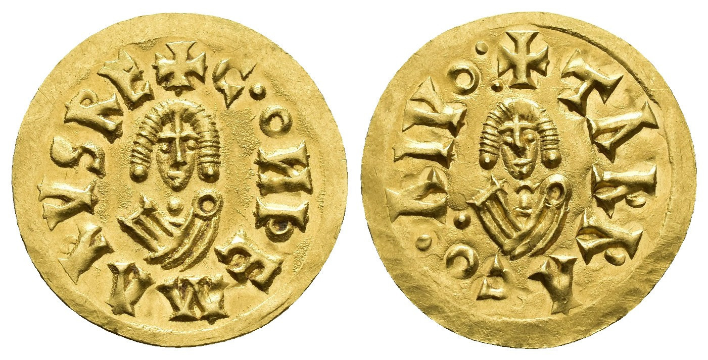 REYES VISIGODOS. GUNDEMARO. Tremissis. Tarracona. AU 1,47 g. 18,5 mm. CNV-210, mismo ejemplar. R.B.O. EBC+. Muy rara.