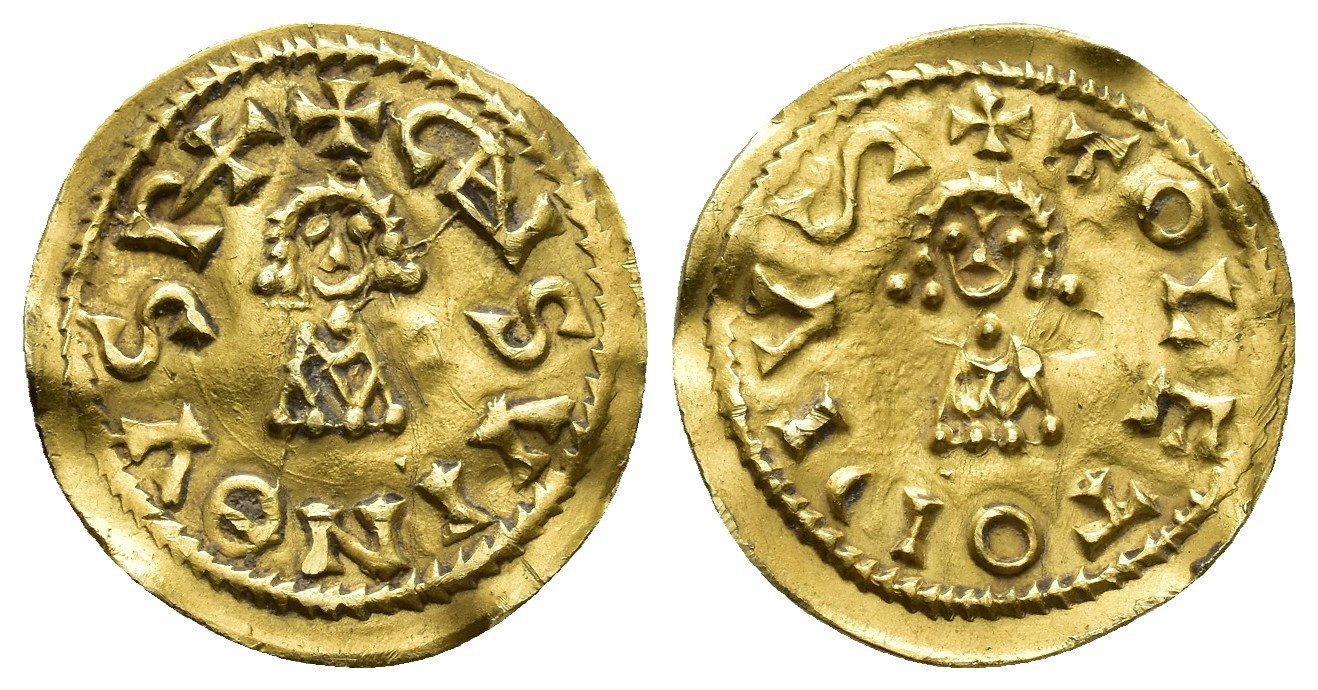 REYES VISIGODOS. CHINDASVINTO. Tremissis. Toleto. AU 1,47 g. 18 mm. CNV-417. Alabeada. Golpecito en rev. MBC+. Muy escasa.