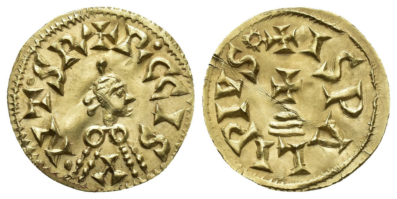 REYES VISIGODOS. RECESVINTO. Tremissis. Ispali. AU 1,52 g. 17,4 mm. CNV-451. Desdoblada. EBC-. Rara.