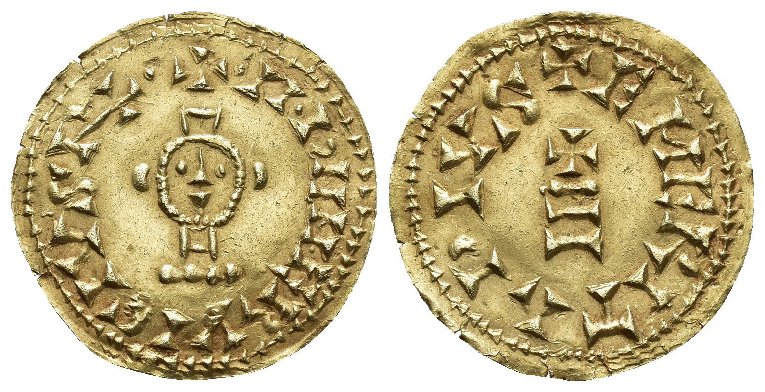 REYES VISIGODOS. ERVIGIO. Tremissis. Emerita. AU 1,26 g. 20,8 mm. CNV-no, tipo 502. EBC. Muy escasa.