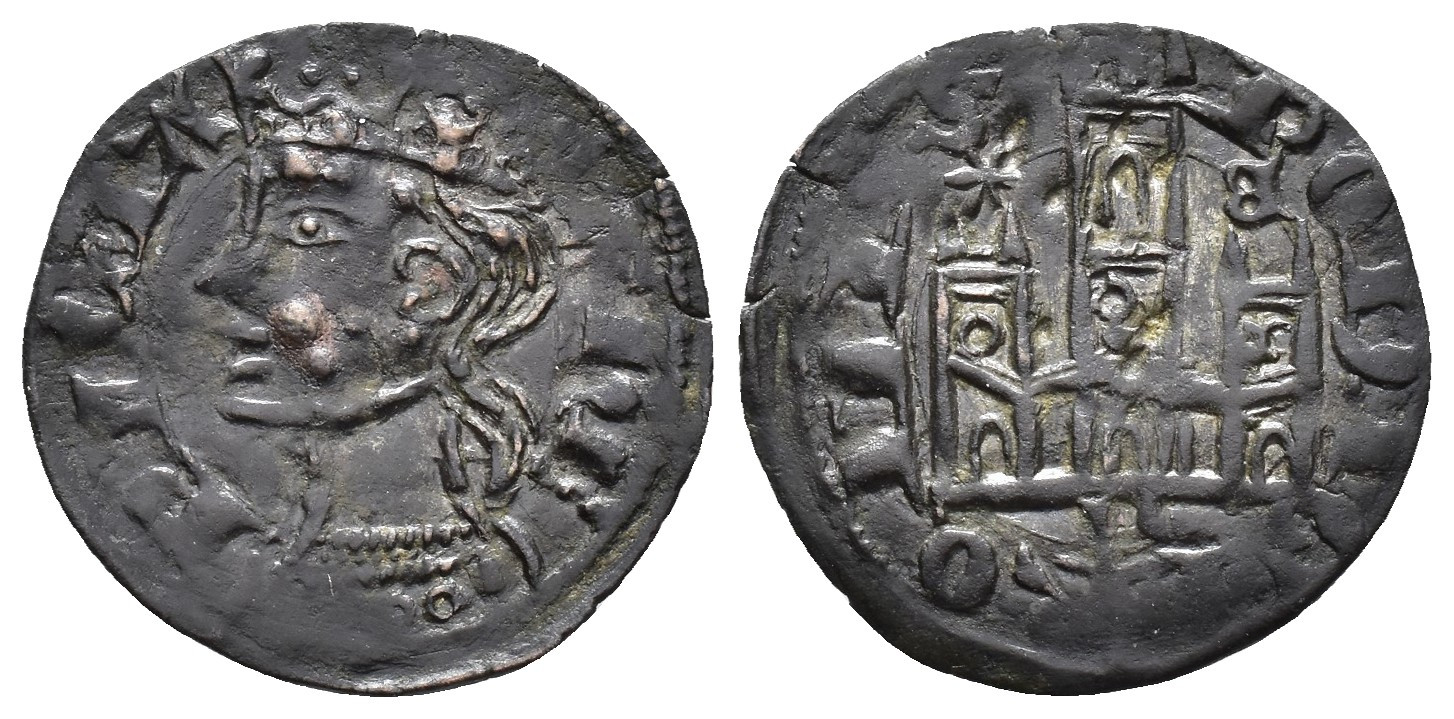 REINOS DE CASTILLA Y LEÓN. Después de Alfonso XI. Imitación de moneda castellana. Por el conde de Valence et Die (Francia), c. 1350. A/ ADE-PICT. R/ PODIG--RONIS. * Y B invertida en rev. BMM-504.1. EBC-.
