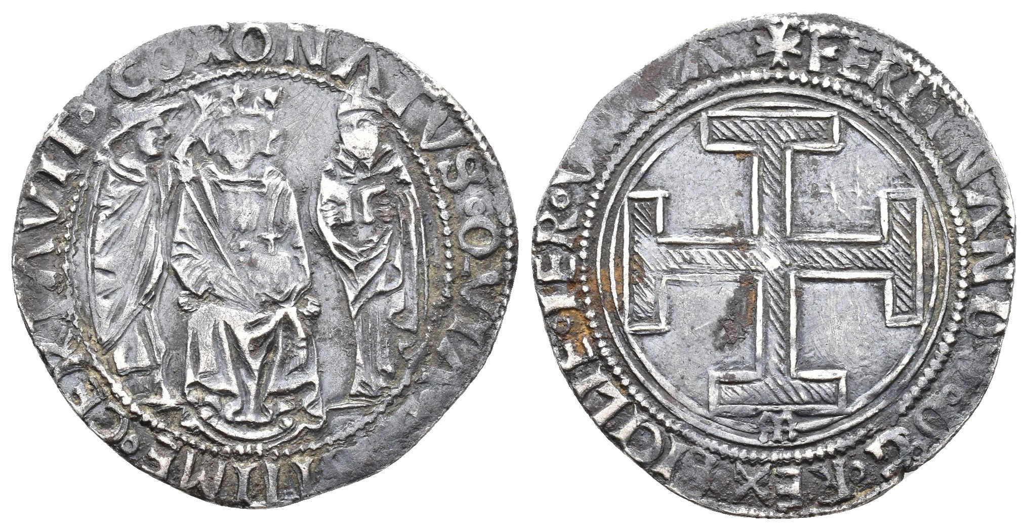 CORONA DE ARAGÓN. FERNANDO I DE NÁPOLES (1458-1494). Coronado. Nápoles. Marca M en rev. AR 3,74 g. 27,7 mm. IV-1001. Pequeñas marcas. MBC+.
