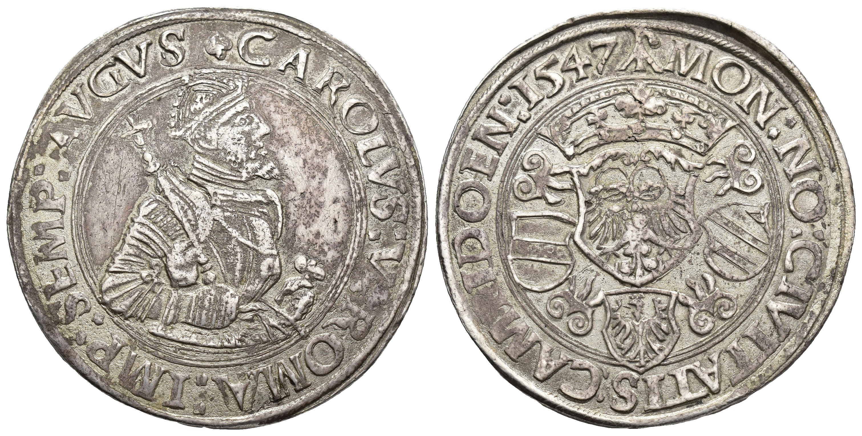 CARLOS I. Tálero. 1547. Kempten. AR 28,11 g. 41 mm. Dav.-9365. Leves oxidaciones. MBC/MBC+.