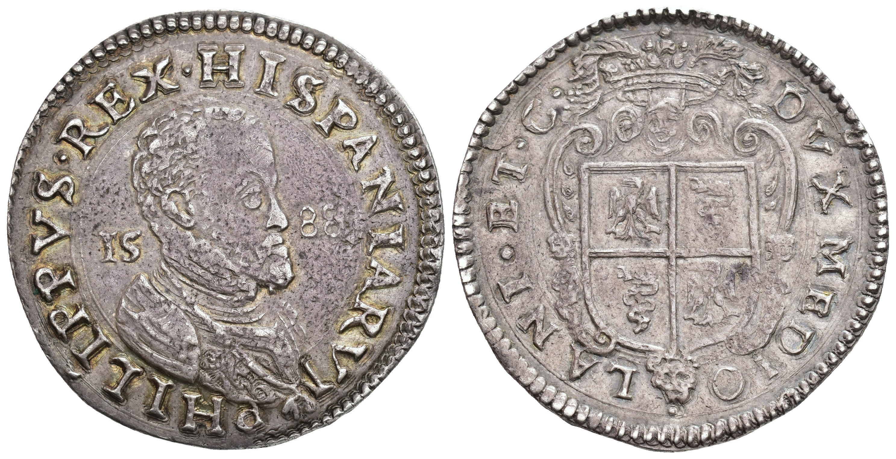 FELIPE II. Ducatón. 1588. Milán. AR 31,83 g. 41 mm. Olivares-31. Ligera plata agria. MBC+.