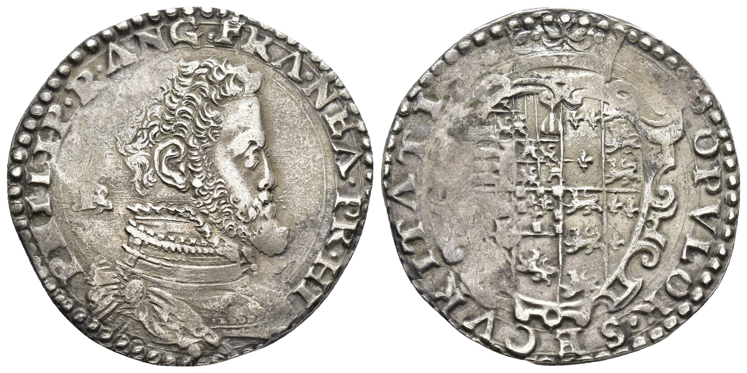 FELIPE II. 1/2 ducado. Nápoles. IBR enlazadas. AR 14,4 g. 33,2 mm. Olivares-101. Vanos. MBC+.
